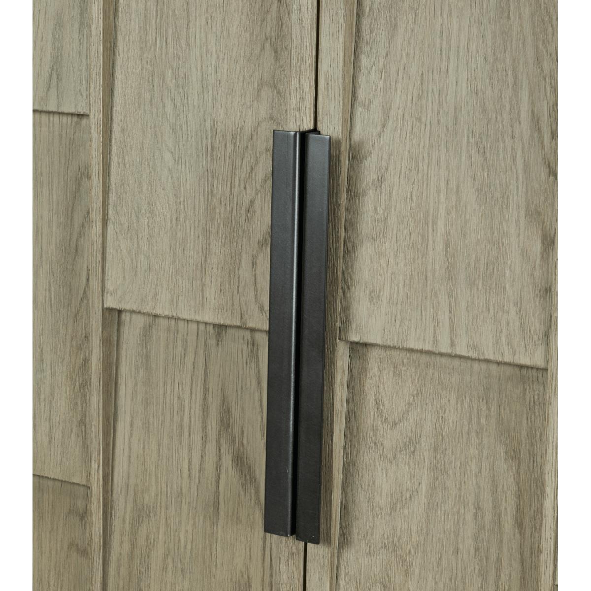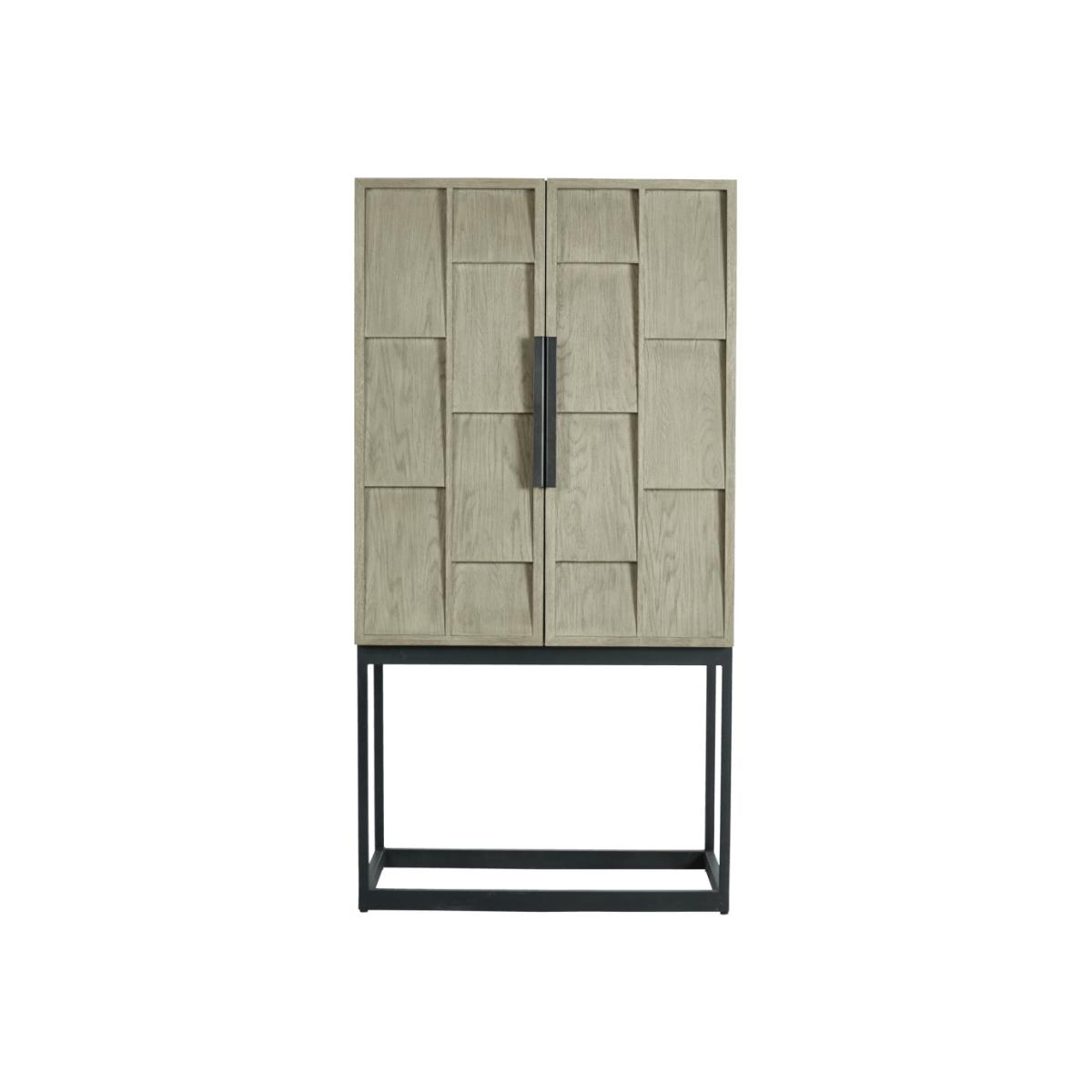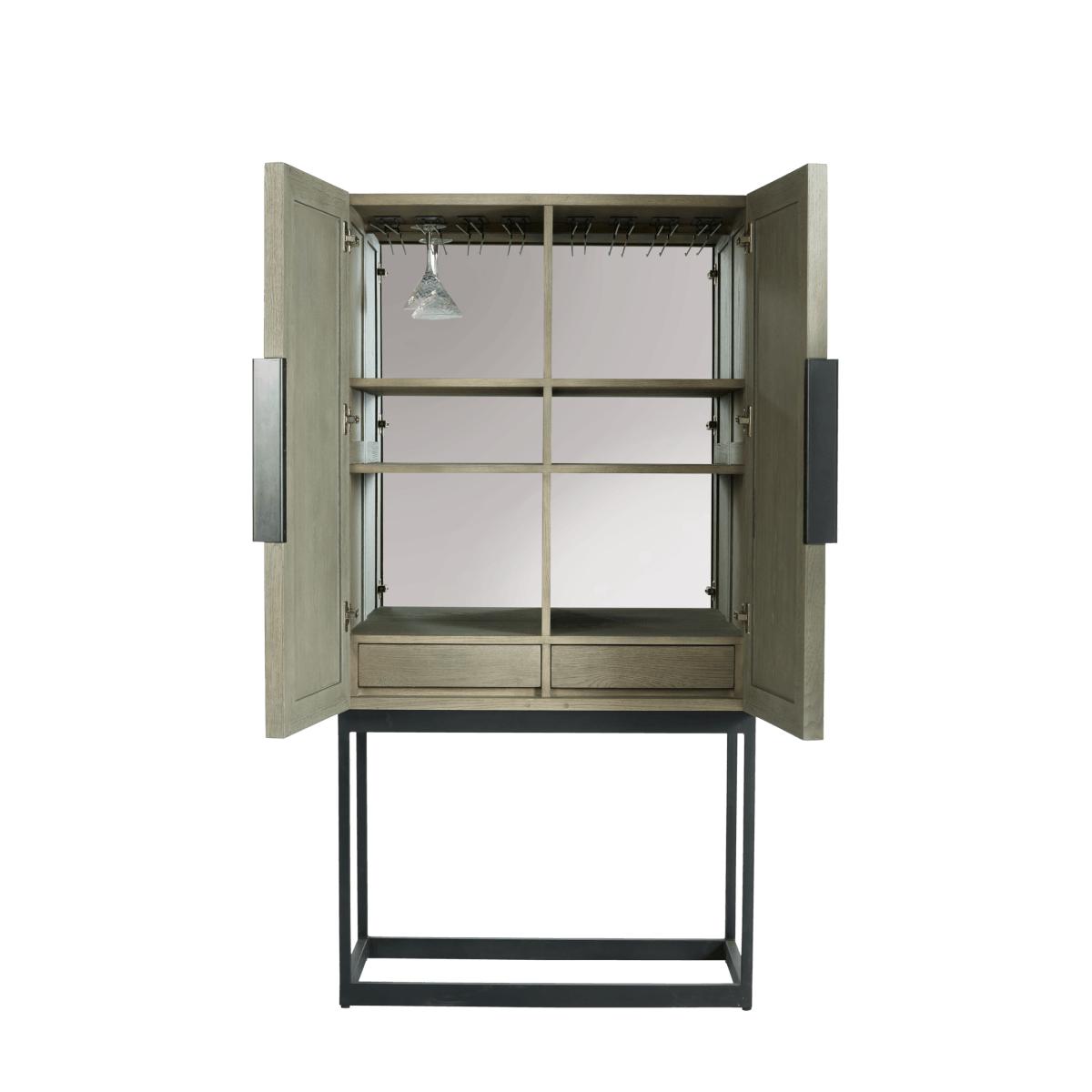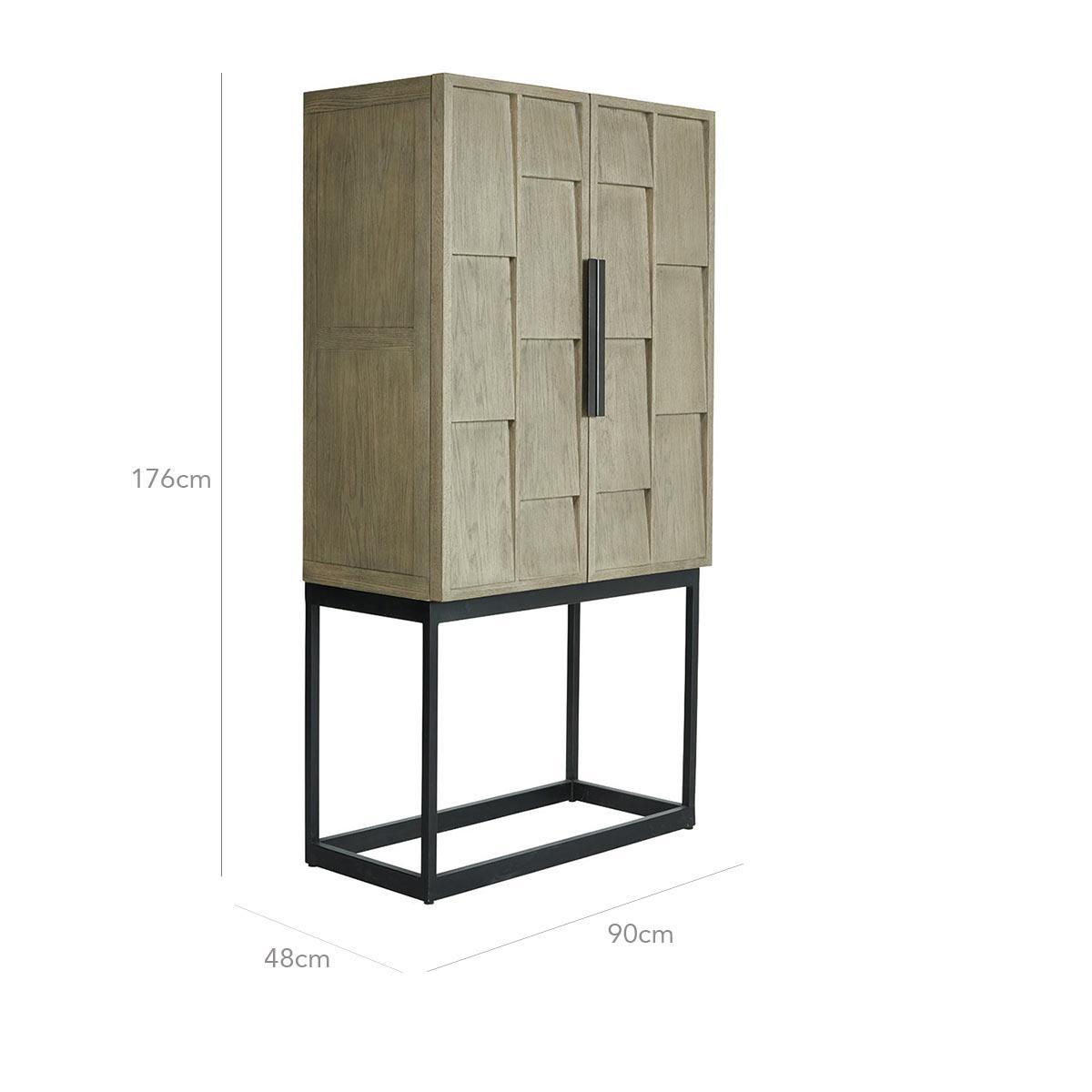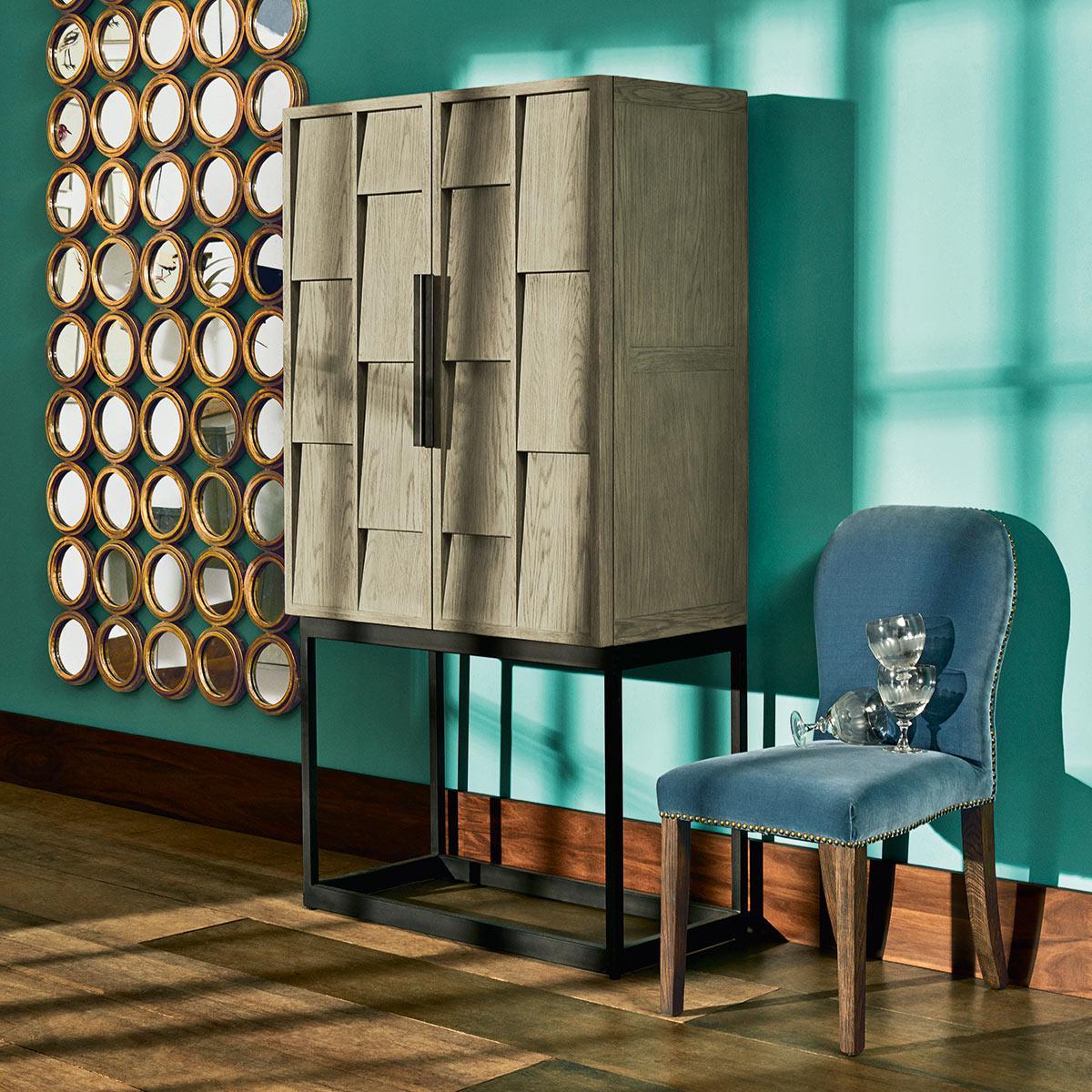 The modern bar cabinet has had a huge resurgence recently and this one, crafted from oak and modern materials, has been specially customised to keep all your drink requirements in one stylish design. Cubist influences – the shingled pattern decorating the doors and minimal square steel base – pair beautifully with a painted slate finish, which allows the natural grain of the oak to show through. Inside the double doors (with rolled steel handles and soft close hinges), there's plenty of room to store all your barware essentials. Hang up to four wine glasses in each of the eight racks at the top of the cabinet, and store tumblers, cocktail shakers and drinks in the middle and bottom sections. The two drawers are perfect for storing coasters and napkins. And don’t worry, you’re not seeing double (yet) - the bar cabinet features a lavish mirrored back.
