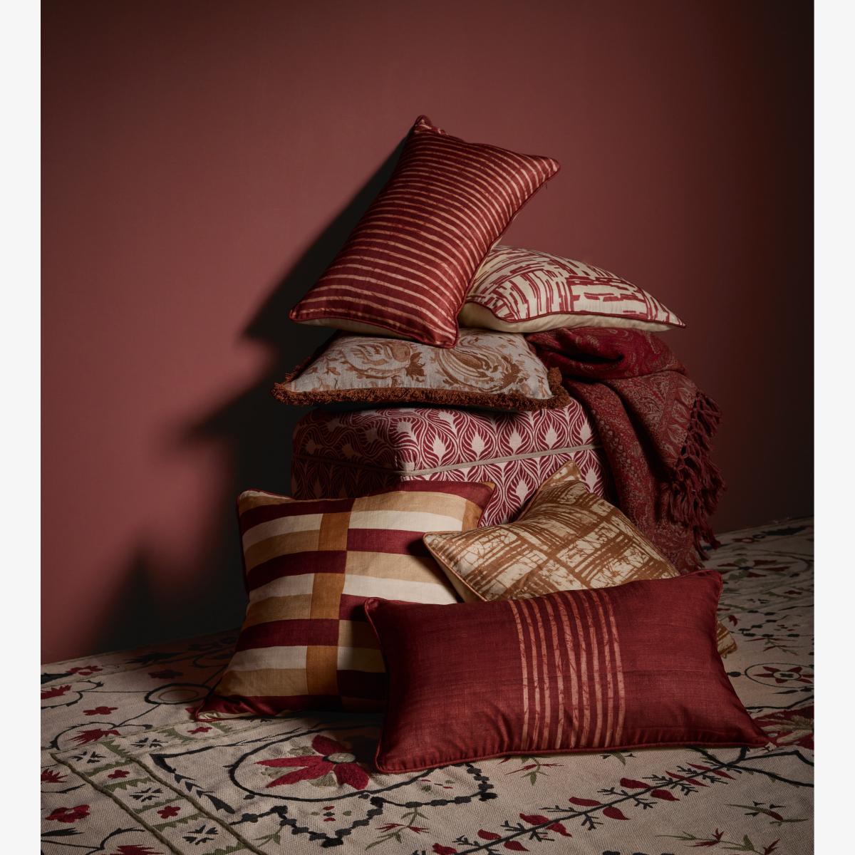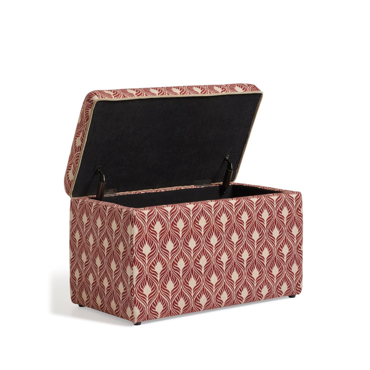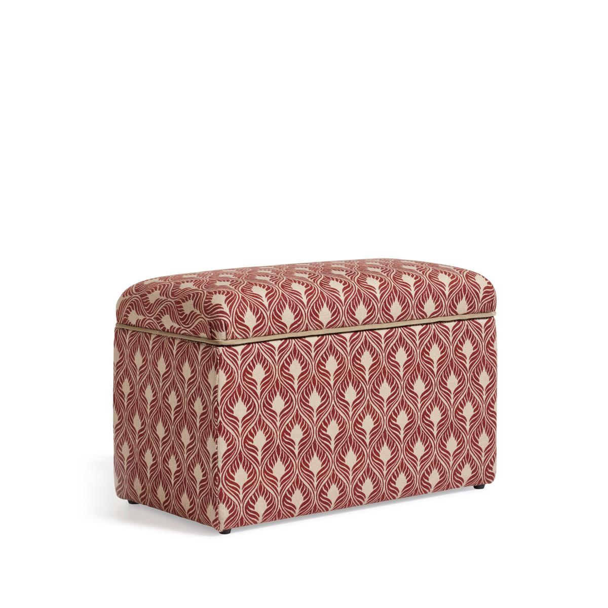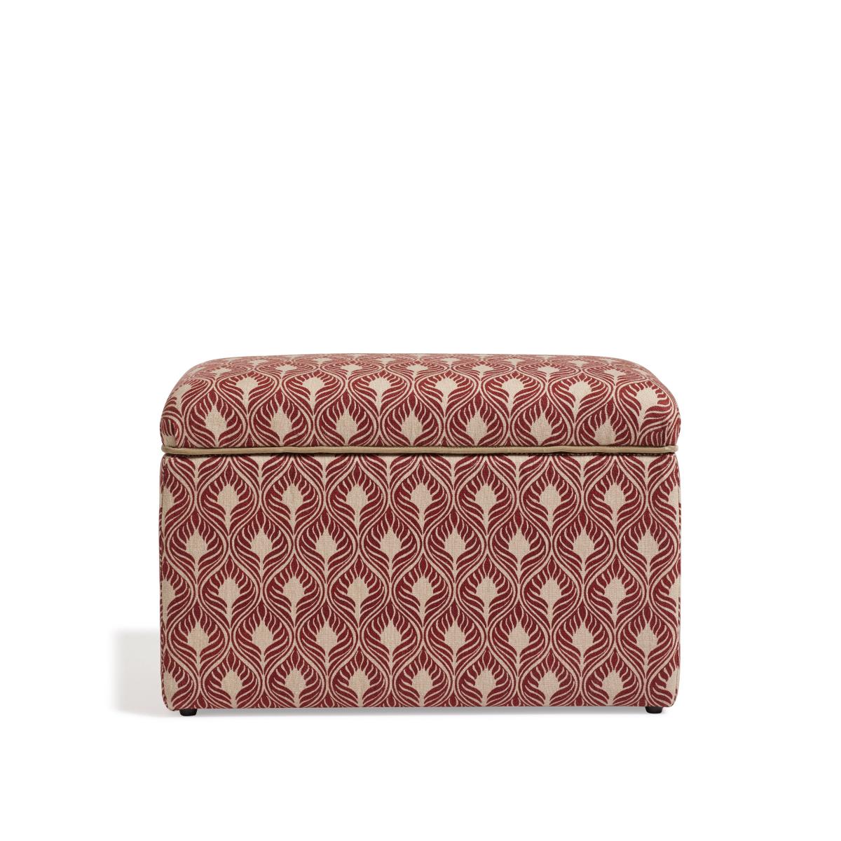 Think our upholstered trunks, but petite. The Carena is a smaller version that provides the perfect storage/seating option for more confined spaces, whether it be an entryway, a bed end, or a landing. It features our popular Ghini Feathers print in a pleasing Red Garnet hue, complemented by Porridge velvet piping.
