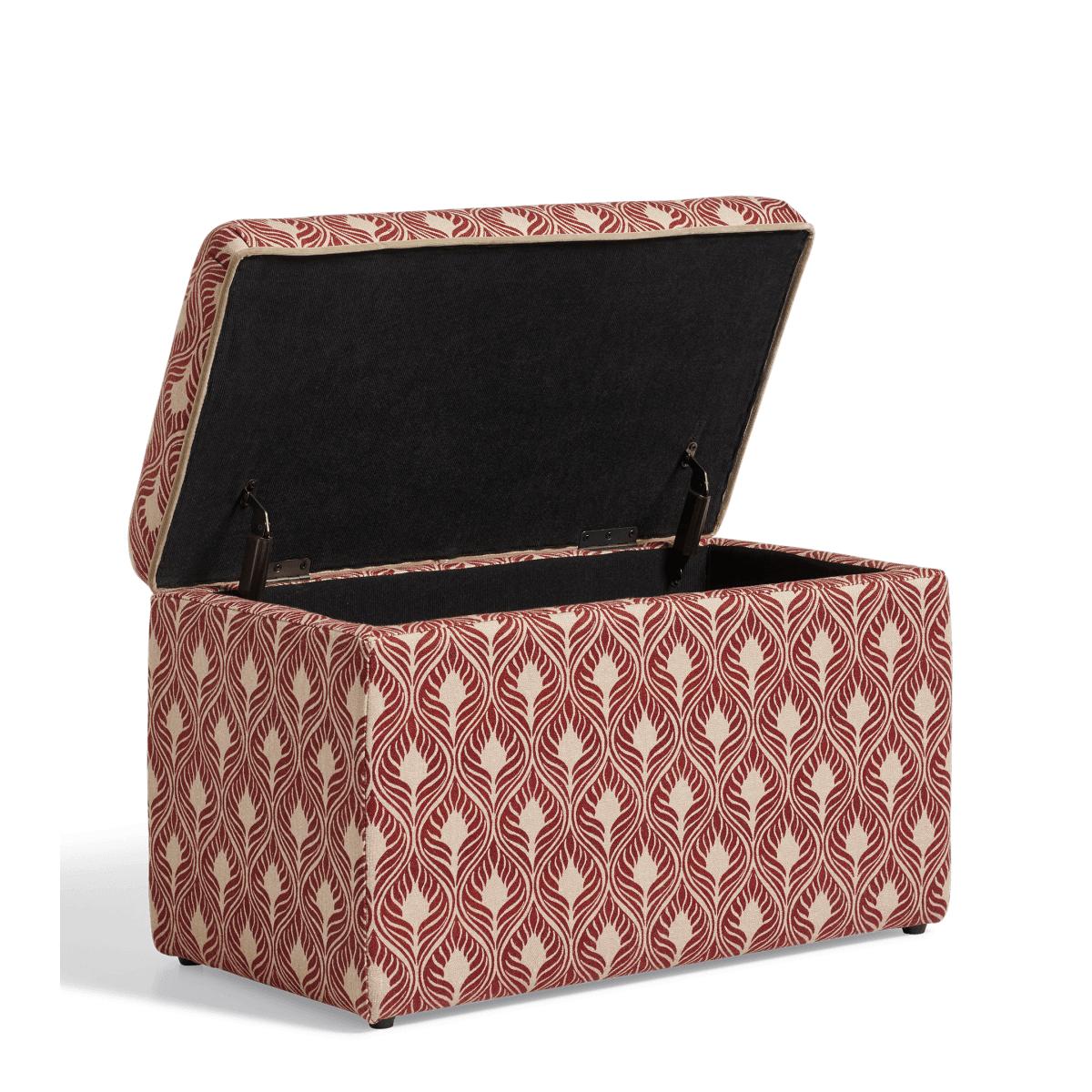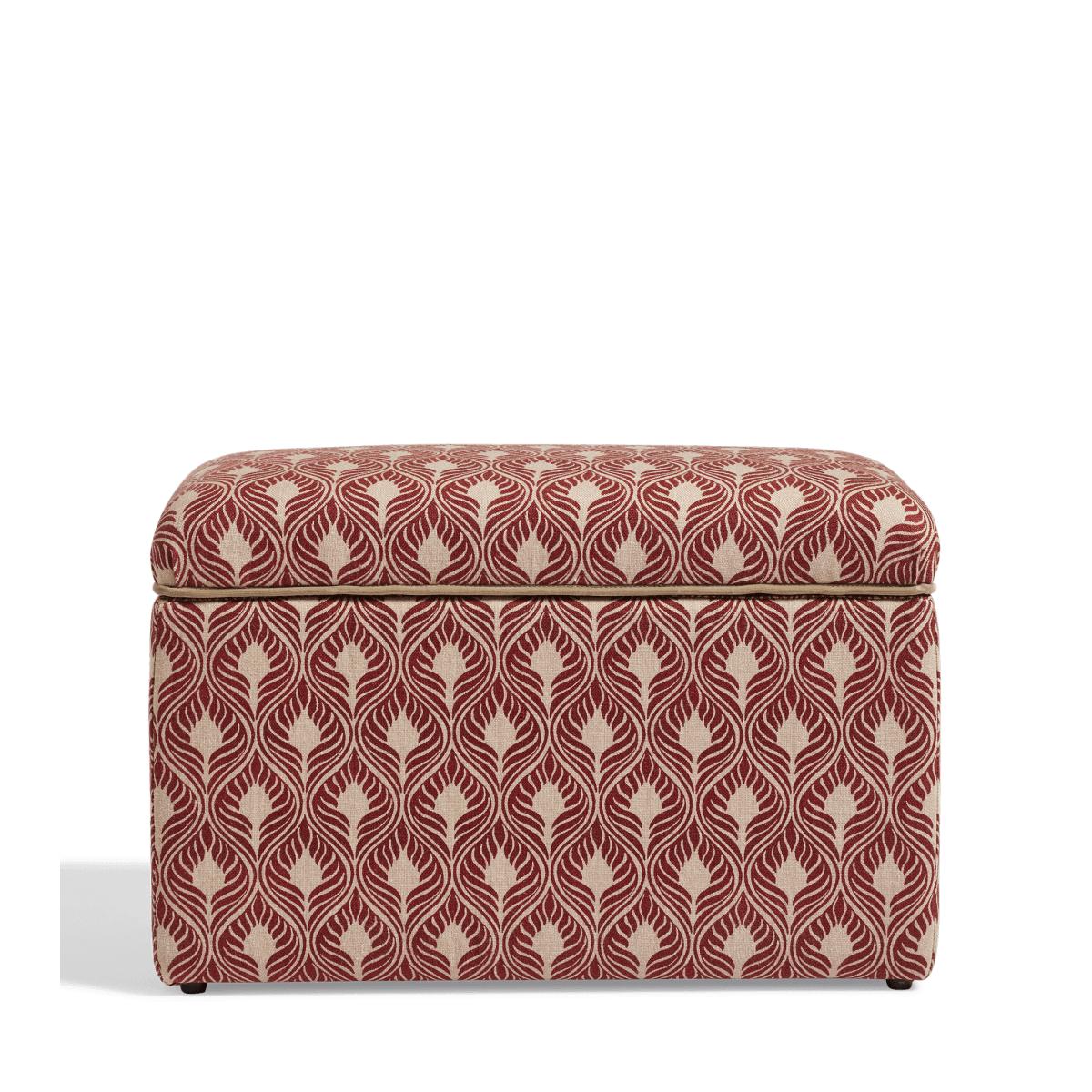 OKA, Carena Upholstered Trunk - Ghini Feathers Red Garnet, Ottomans, Linen, Botanical