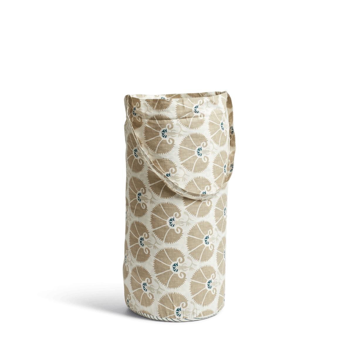 This taupe-coloured floral design is screen printed onto a 100% cotton base, with a hint of blue sitting in the centre of each motif. Better still, the Carlina is reversible, with a pleasingly fine stripe adorning its underside. Carlina is available as a hand-embroidered Cushion Cover in several colours too, so you can mix and match the print as you please. This quilt comes neatly packed in a matching bag.