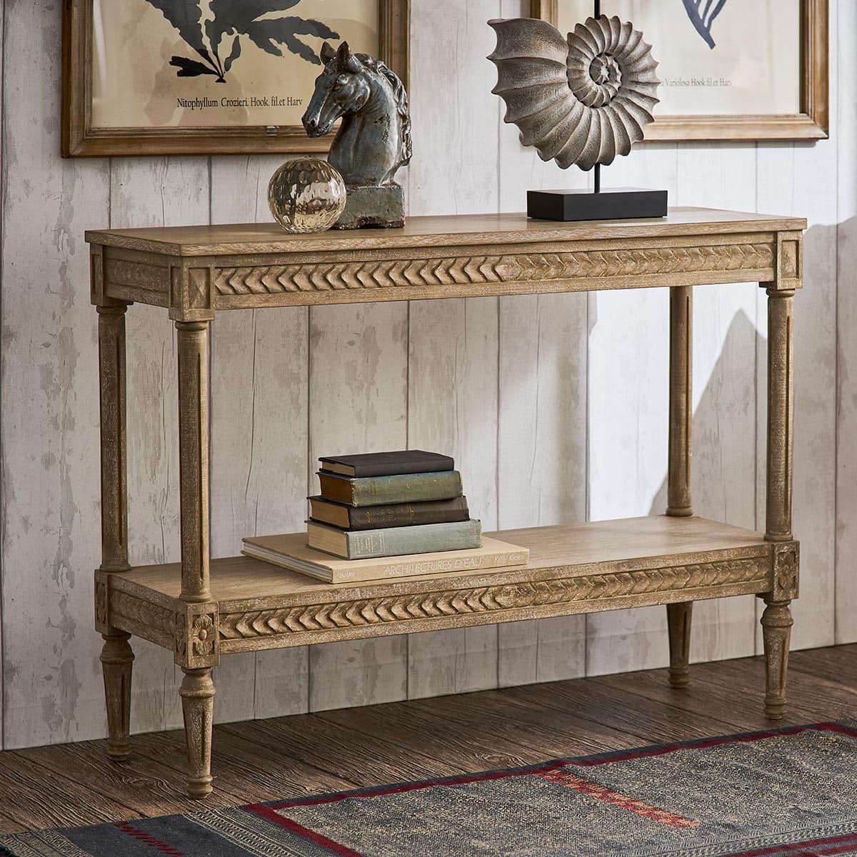 Named "Castellau" after the region in Britain where ancient decorative wood carvings have been discovered, this console is testament to the power of a simple structure that lets detail take center stage—it’s the intricate carved frieze of this piece that makes it such a showstopper. The natural-colored Castellau Console Table would look equally at home in a rustic-style entryway as it would adding character in a modern scheme.