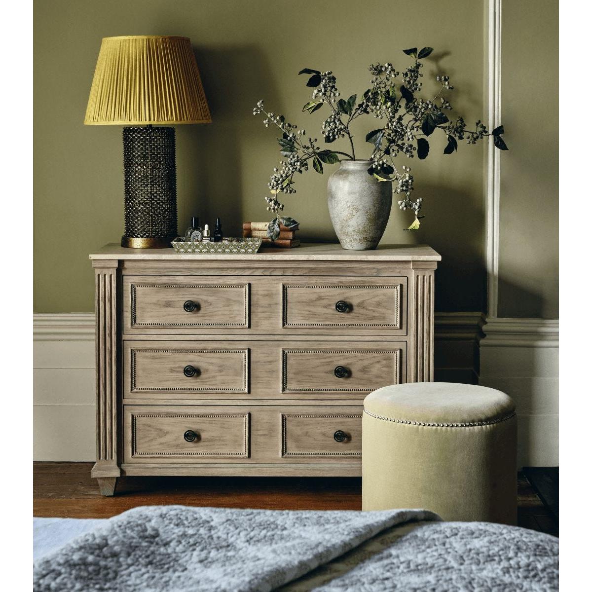 I’m a fan of this Castleton chest for its clean bleached-oak finish and neat moulded detailing, which bring warmth without feeling too heavy. It sits well in Scandi-inspired bedrooms, coastal living spaces or contemporary country hallways. Styling tip: layer a simple mirror or round tray on top, add a low vase of greenery and a small stack of design books. Tuck woven baskets underneath for extra storage and to underline its laid-back, lived-in look.