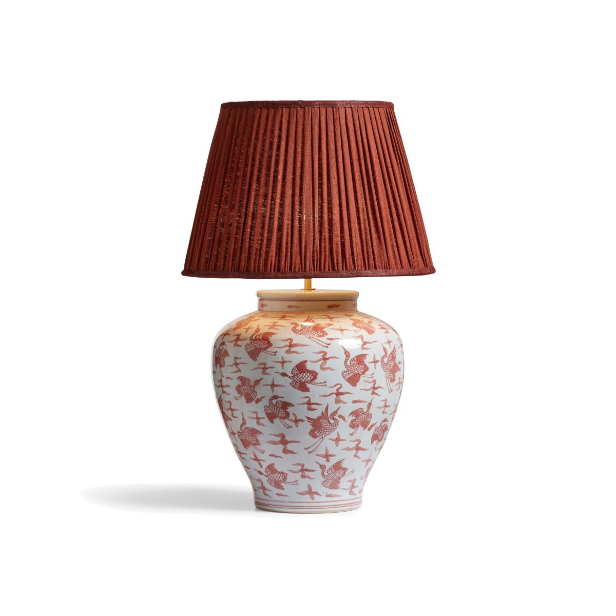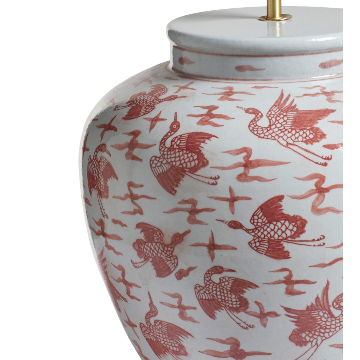 Meaning 'longevity' in Mandarin, Changshou features a pretty bird motif on its large porcelain lamp base, a symbol of endurance in China. Delicately hand-painted, the lamp comes in a distinctive red and antiqued white palette that's perfect for adding a pop of colour to your scheme. It's crafted by a small group of talented artisans who've honed their craft over many generations in Jingdezhen, China, a city known for its rich history in traditional porcelain design.
