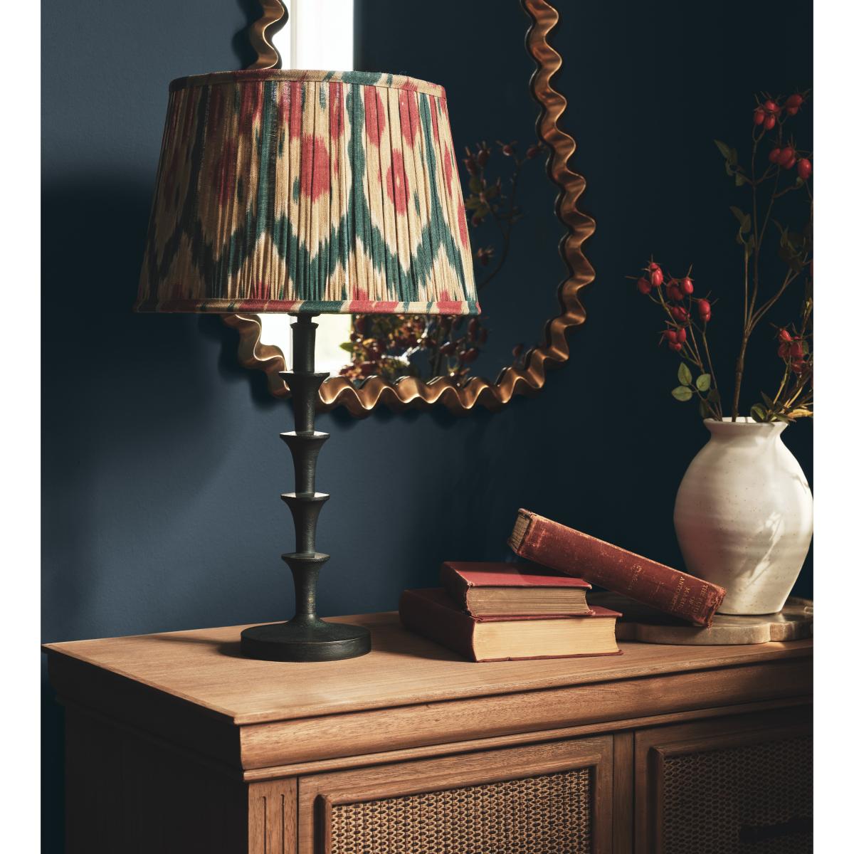 I love this lamp for its striking bronze verdigris finish, which adds a touch of vintage charm while still feeling contemporary. It works really well in a variety of interiors, from classic English country homes to more eclectic or transitional spaces. For styling tips, try pairing it with textured fabrics and earthy tones to highlight the natural patina of the metals. It’s perfect on a bedside table or a sideboard, where its character can be appreciated up close. Keep the surrounding accessories minimal to let the lamp be the statement piece, but don’t shy away from layering with other bronze or brass accents to create a cohesive look.