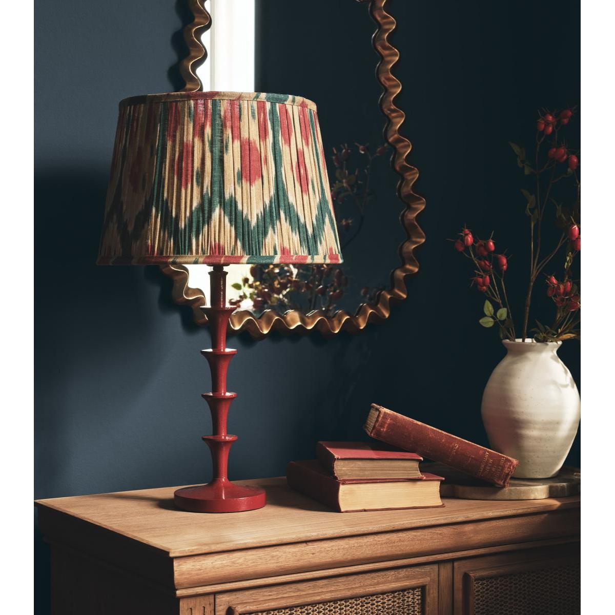 This lamp is a fantastic statement piece, with its rich dark red colour and elegant metal finish. I love how it combines a classic shape with a contemporary edge, making it versatile for both traditional and modern interiors. It works especially well in living rooms or bedrooms where you want to add a splash of colour and personality. Practical styling tips include pairing it with neutral or patterned textiles to let the lamp stand out, or placing it on a side table with other metallic accents for a cohesive look. Its bold colour and timeless silhouette make it a reliable choice for adding warmth and visual interest to any space.