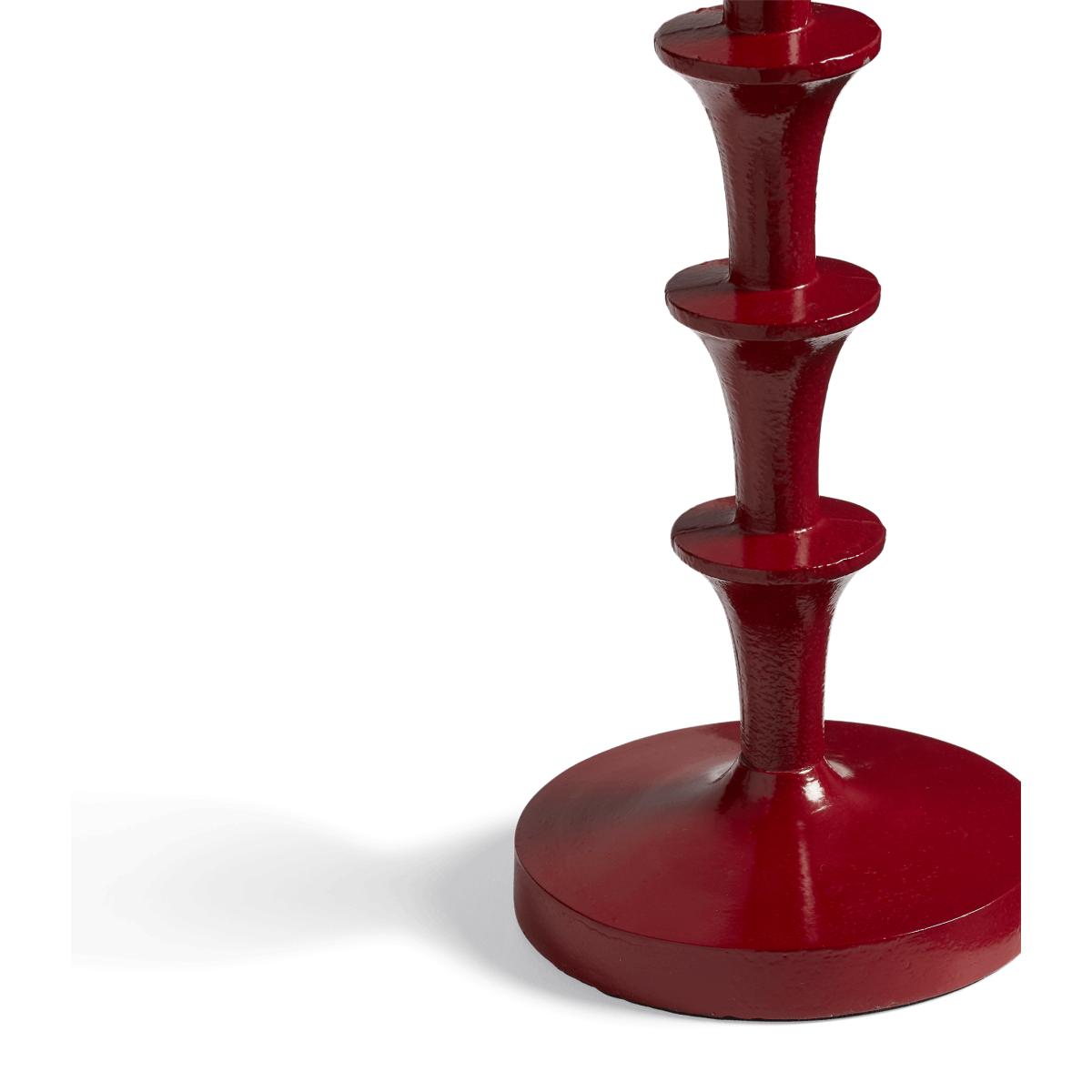 The Clara has a unique tiered stem that is reminiscent of growing fronds of a palm plant. Its shape is created by pouring the molten metal into a mould made from a sand mixture, left to set, and then welded, filed and polished. It has a shiny Dark Red finish.