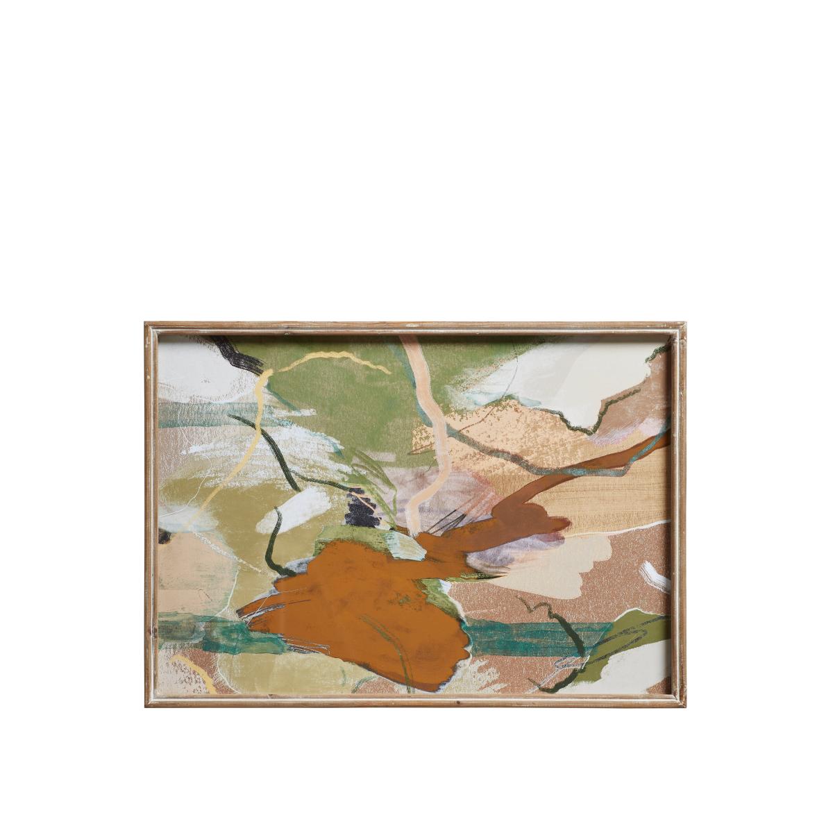 These abstract prints feature swirling patterns in warm, muted colours accented by meandering black lines. They can be interpreted as indistinct still life's or landscapes, but the eye is in the beholder, as is the composition in which you choose to hang the frames - they work well as a set or, placed separately to draw the eye around the room.