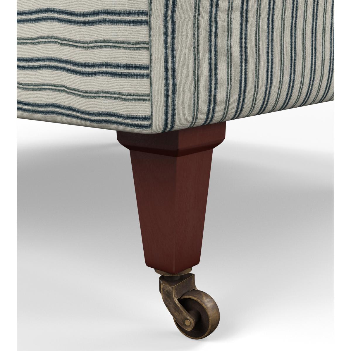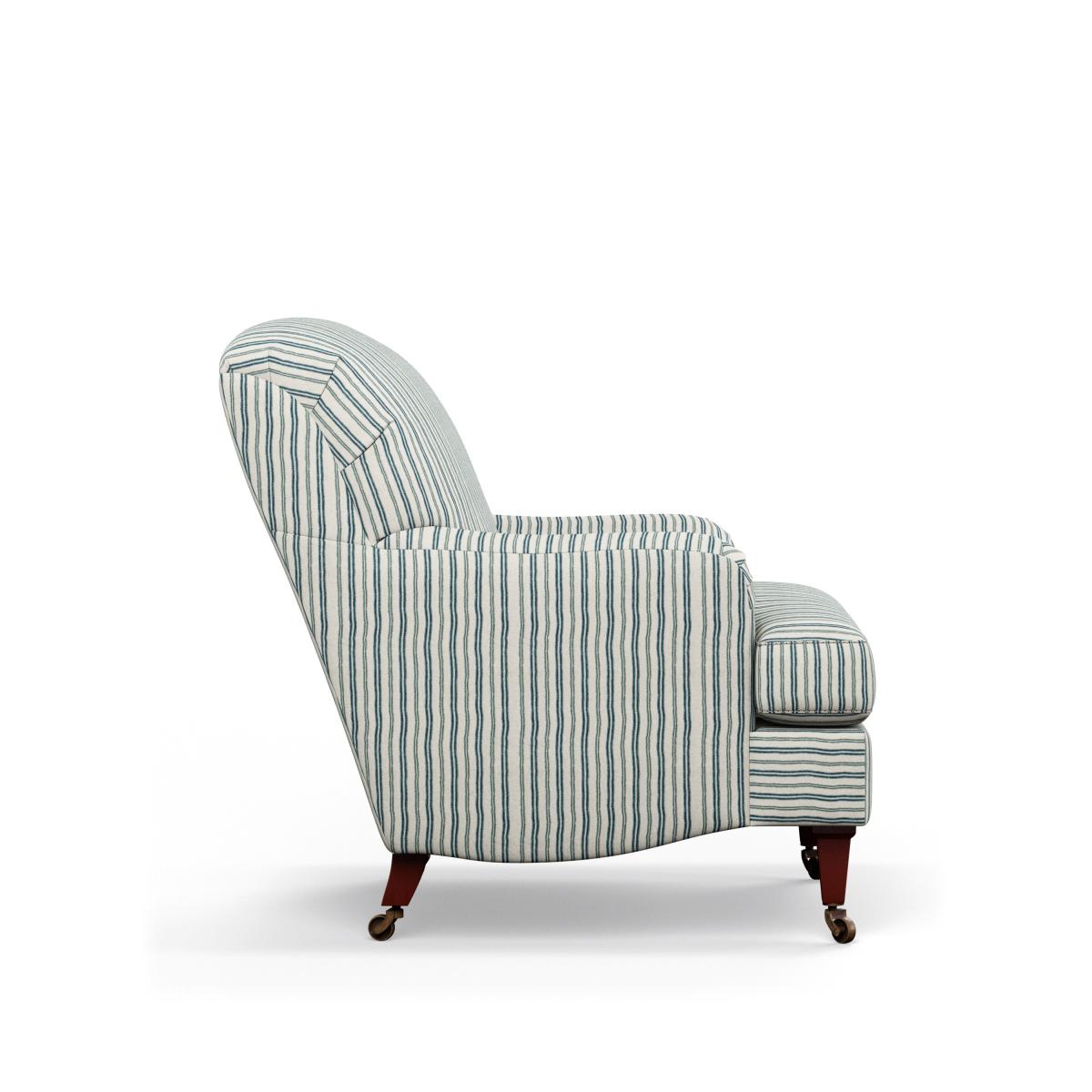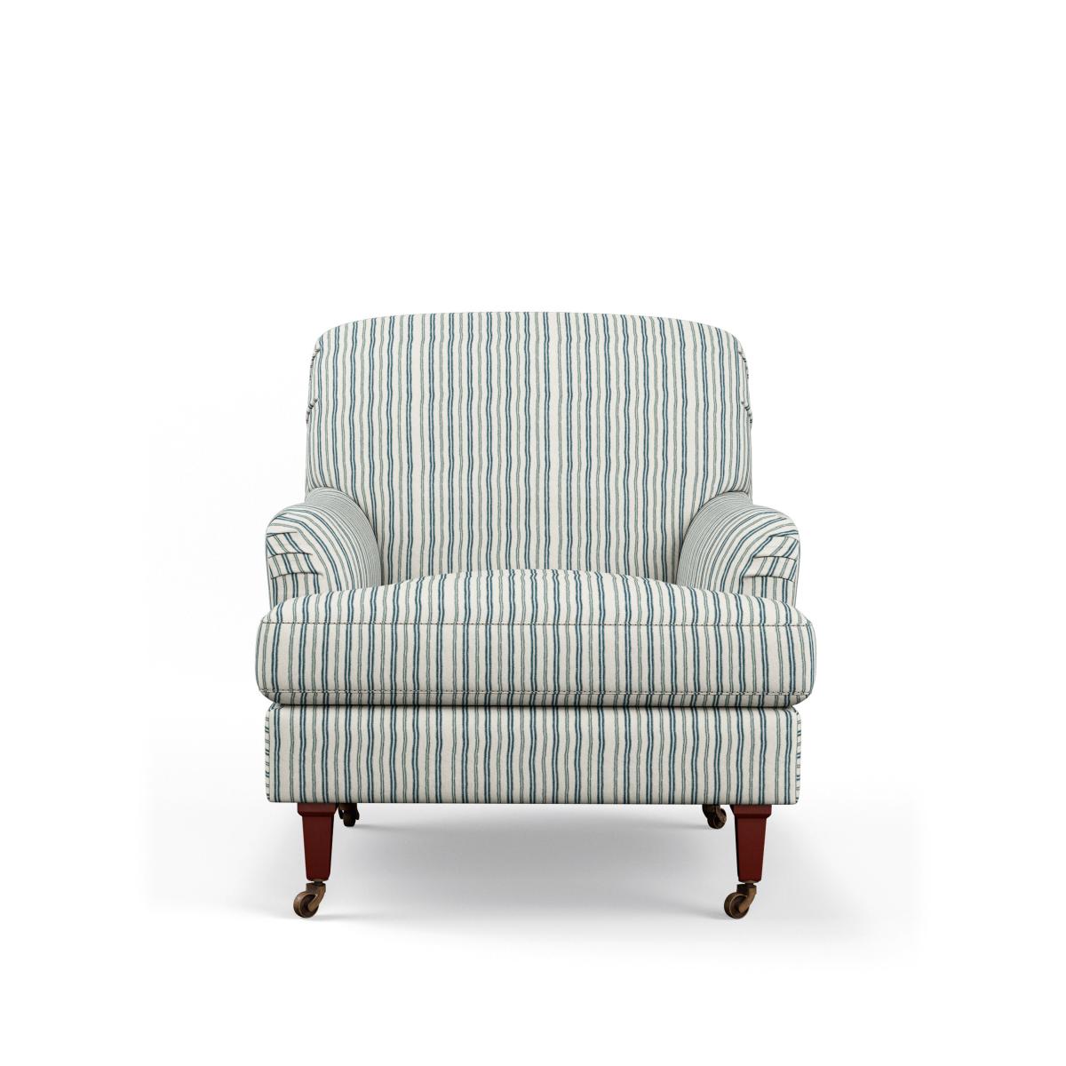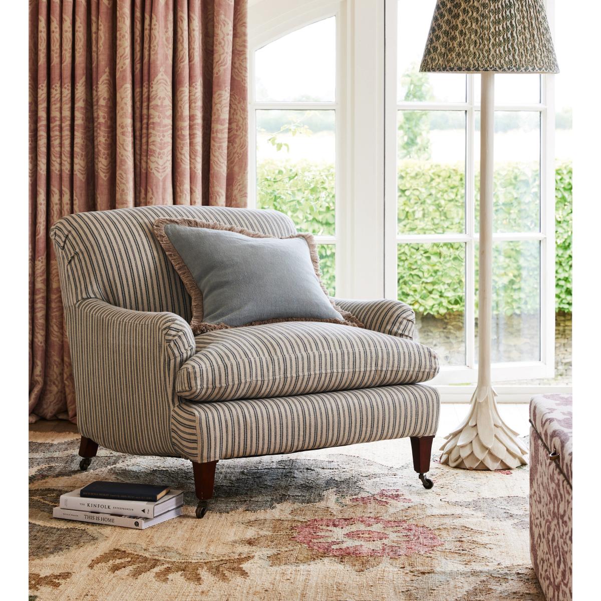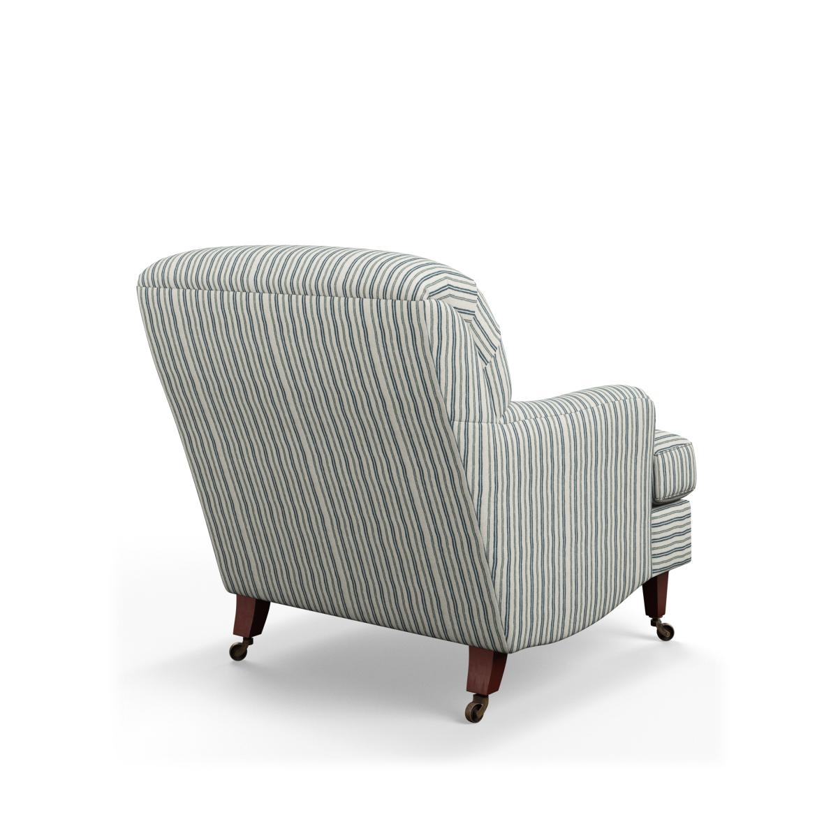 Just when you thought that the Coleridge family couldn't get any bigger or better, we've reimagined the design and completed it with a smart navy ticking stripe. Inspired by a classic fabric style, our designers developed a brand-new stripe whose lines are formed from horizontal dashes - giving it a lighter finish with more personality than a solid stripe. The comfortable armchair retains the signature deep back and rounded arms the Coleridge is known for, while increasing its seat size, making it the perfect spot to relax. Its legs are removable and will be attached upon delivery.