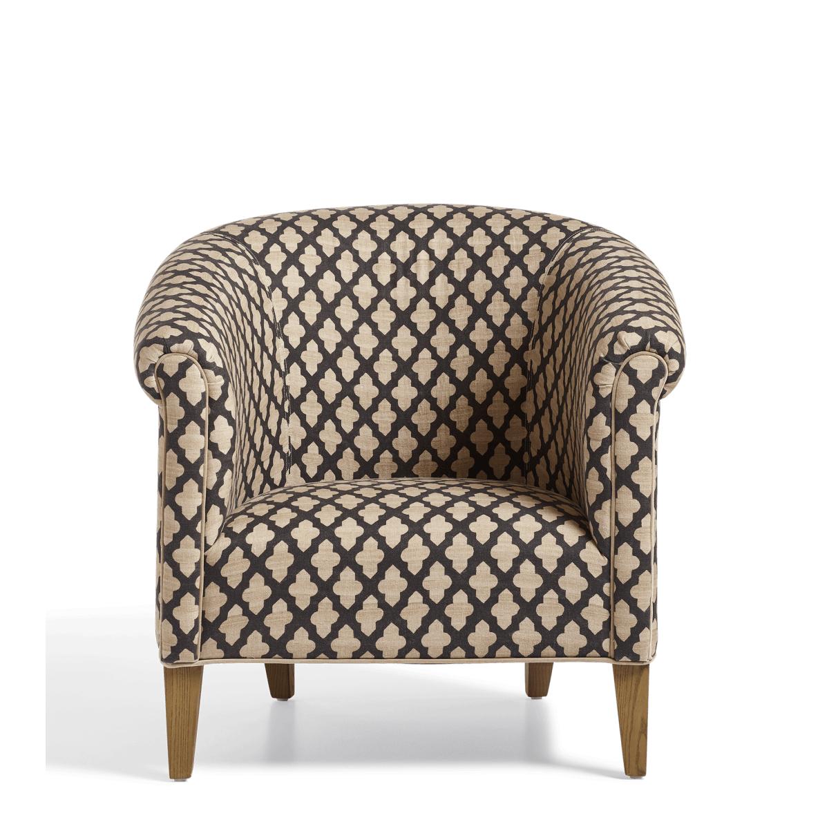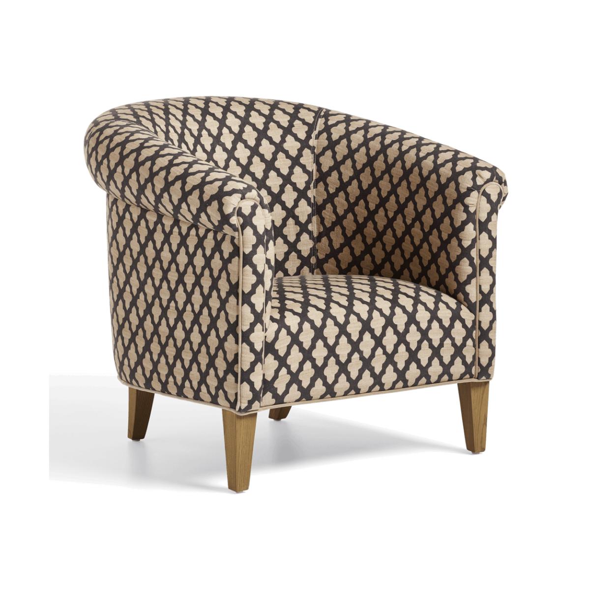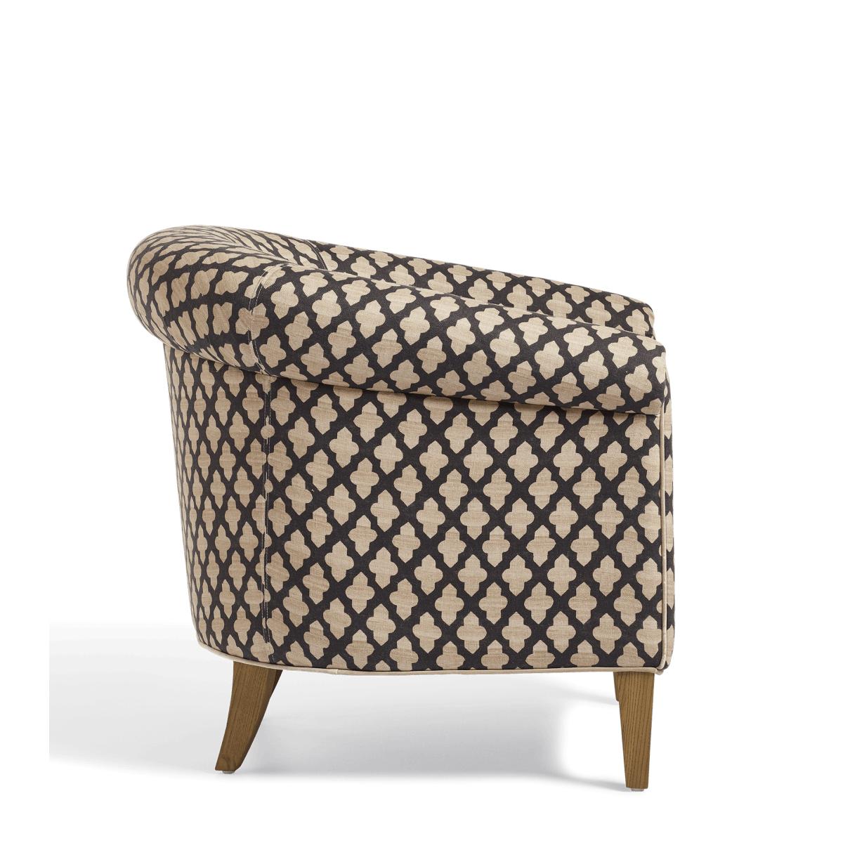 I’m a fan of this Coniston chair for its neat tub silhouette and bold black-and-natural geometry - it brings instant character without clashing. It sits equally well in a pared-back Scandi-inspired lounge or a fussier, vintage-meets-modern scheme. For styling, keep your soft furnishings simple: a single textured throw in a complementary shade, perhaps a warm clay or muted olive, will add depth without competing. Tuck it into a cosy reading nook beside a slim wooden side table and a tall plant to balance the pattern and make the most of its compact footprint.