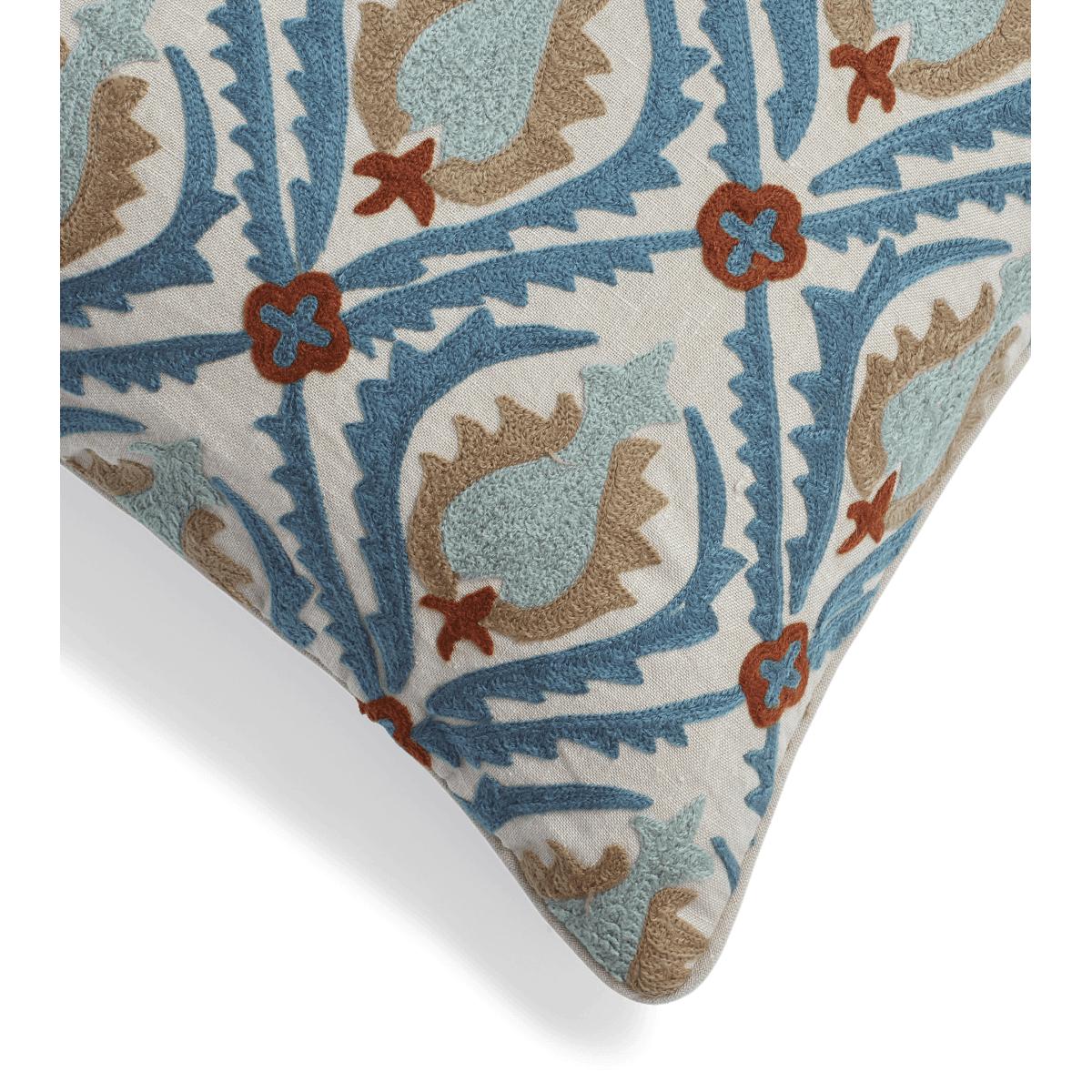 OKA, Cornelia Cushion Cover - Dirty Orange/Blue, Cushion Covers, Linen/Cotton Blend, Embroidered