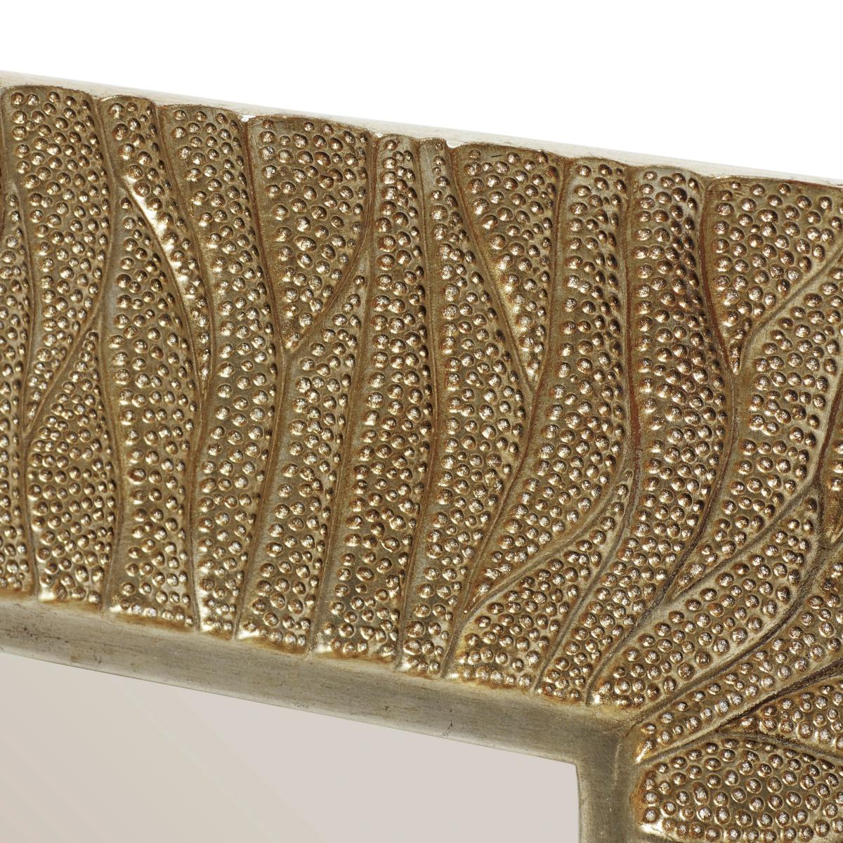 The square frame of our Cressida Mirror is adorned with a carved pattern that's reminiscent of the surface of a leaf. It is then foiled in a gold finish for an antique effect.
