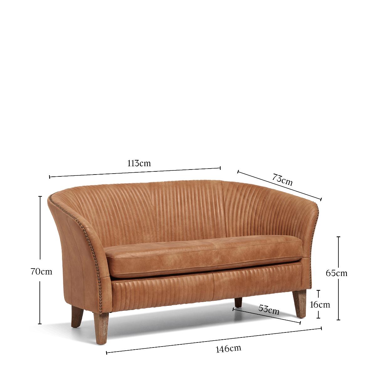Our Crosby design originally debuted as an armchair, brimming with 1940s appeal. Taking its name from Bing Crosby – the famed American multimedia star – this 2-Seater Sofa is the perfect way to add a little classic charm to your scheme. The smooth Hazelnut Brown leather has a pleasing matt finish and is complemented beautifully with polished studs. Factor in the seashell-like back of this sofa, and you have yourself a real statement piece.