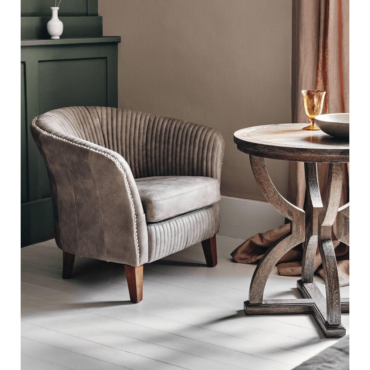 Brimming with 1940s appeal, this armchair takes its name from the musician of that era. Part of its charm, however, is its ability to blend into both traditional and contemporary schemes, thanks to timeless leather upholstery, studded detailing and a comfortable seashell-like back. Our leather is carefully chosen for its full grain, with natural imperfections in the form of wrinkles and scars that give it textural individuality, warmth and resilience. It has no synthetic top coat which allows it to beautifully age over time, telling its own story.