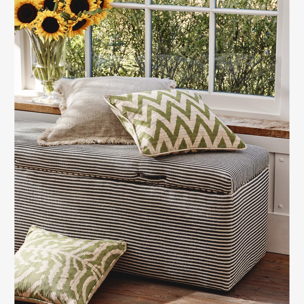 The nautical charm of this stripe-covered ottoman is undeniable, hence its name - a tribute to the literary adventures of Robinson Crusoe. This piece easily doubles as an extra seat or place to rest your feet, thanks to its hard-wearing cotton upholstery, while its generous interior is sizeable enough to store anything from blankets to boots - just watch out for stowaways.