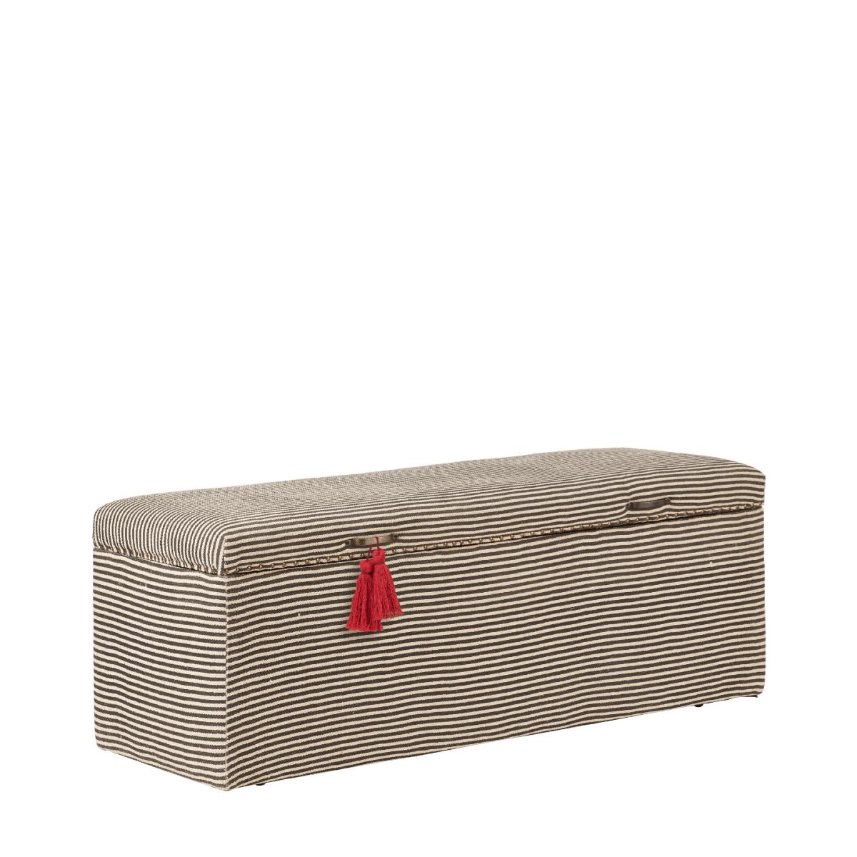 Pairing a timeless striped finish with essential storage this piece is about as close to homeware perfection as you can get. Named as a tribute to the literary adventures of Robinson Crusoe, the generous trunk – finished in hardwearing cotton upholstery – can be used to store anything from blankets to boots. Just watch out for stowaways!.