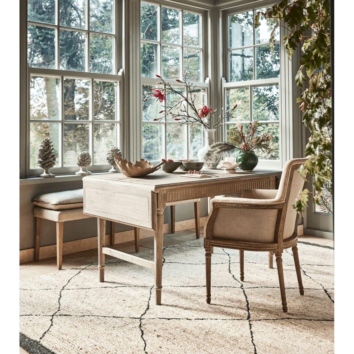 With a carved underskirt that echoes the classical era of Greek architecture and tapered legs that recall Gustavian style, the Cythera Dining Table exudes a certain rustic charm – something enhanced by the fact it's made from recycled pine. The table's versatililty is furthered by a clever folding mechanism that enables it to be extended easily to suit parties of different sizes, without the removal or addition of leaves. When fully extended it seats up to six, and when folded away it seats four.