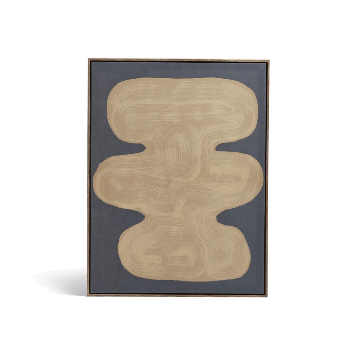 Decorate your walls with the minimally framed organic shapes of our Dayo collection. Each canvas represents a natural element, this one being water – the dark blue background and the beige-toned form pick up the texture of the fibre canvas for a brushstroke effect.