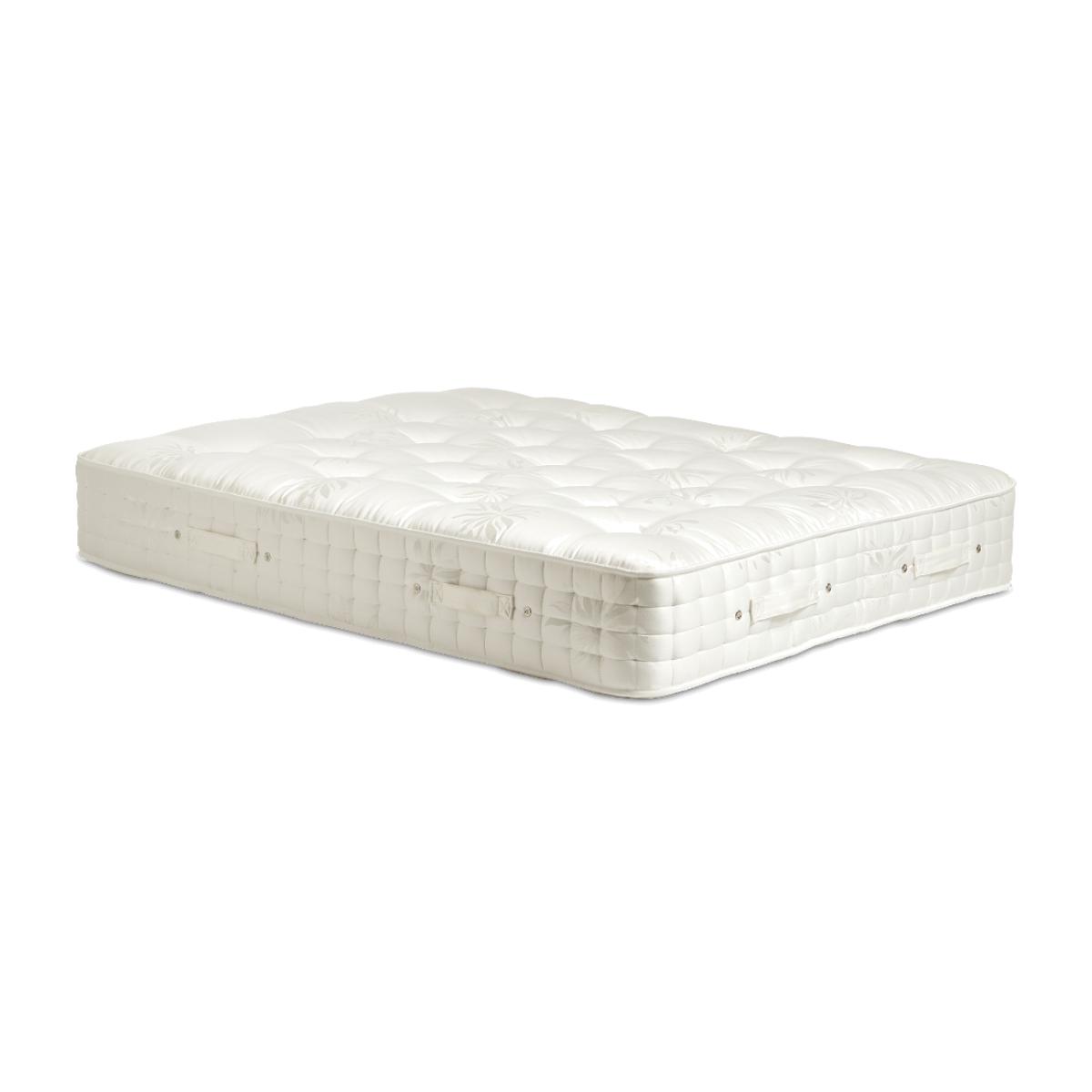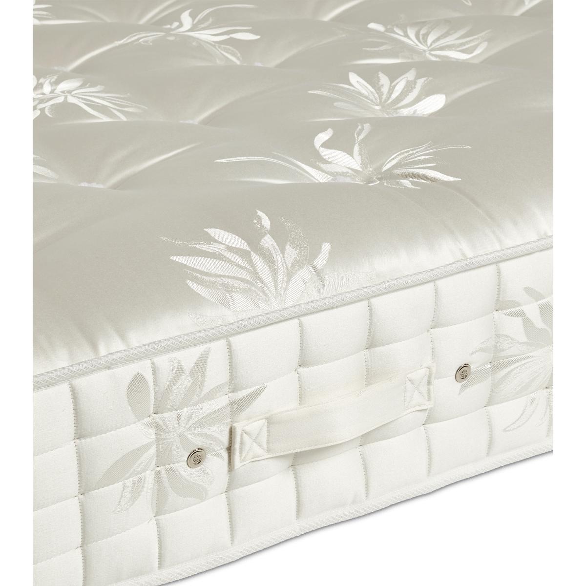 Indulge in ultimate comfort and upgrade your divan bed with our king size deluxe mattress. This thick, premium pocket sprung medium mattress comes upholstered in luxurious white damask fabric with a hand-stitched border. Each spring is painstakingly hand-sewn into its own calico pocket then hand-nested into a honeycomb pattern, allowing it to move independently and distribute weight evenly for ultimate support. Our king size deluxe mattress features a very high spring count (approximately 2,000 springs) and is made of high quality, natural and breathable fibres - layers of wool, horsehair and cotton, topped with rebound wool cotton and a bamboo pad - all of which will ensure an excellent night's sleep. All our divan beds are made by a family firm in Yorkshire with over 30 years of bed-making experience. To keep your mattress in premium condition, rotate the mattress 180° after 3-4 weeks so the head becomes the foot, then 3-4 weeks later, flip the mattress so the bottom becomes the top. Repeat this cycle every 3-4 weeks.