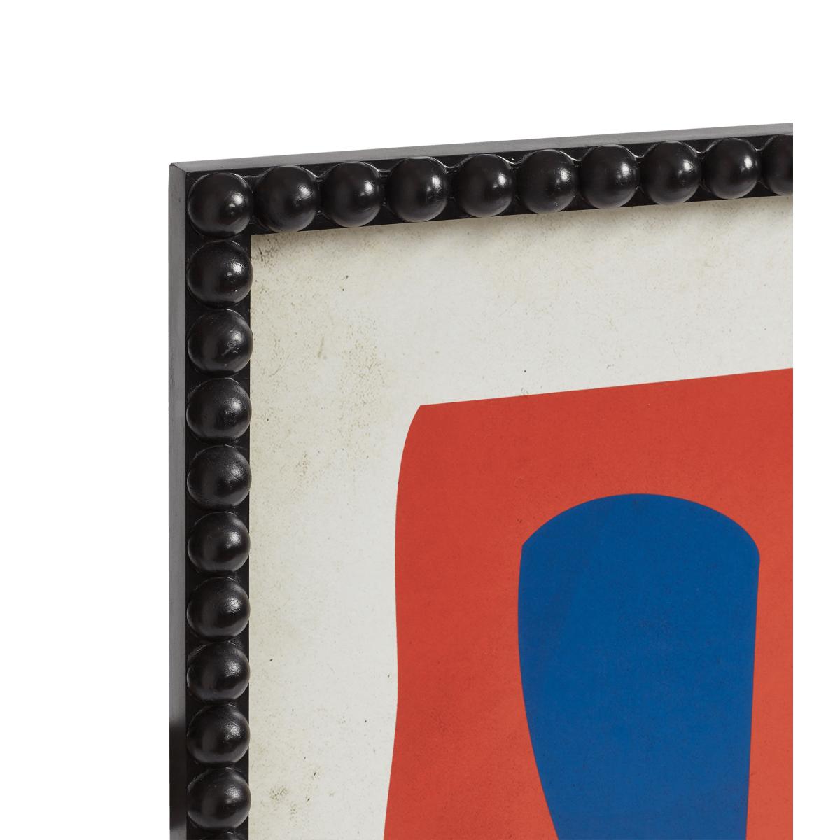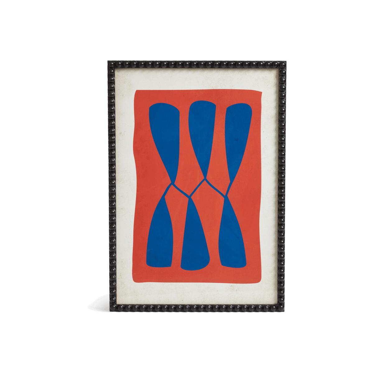 Our Set of Twelve Dera Framed Abstract Prints are so popular we thought we’d focus in on some of the individual artworks. This red and blue sycamore-style design has been blown into larger proportions to admire on your walls. Its bold colours will catch attention, while the hand-painted bobbin-style frame that neatly surrounds it allows it to pop.