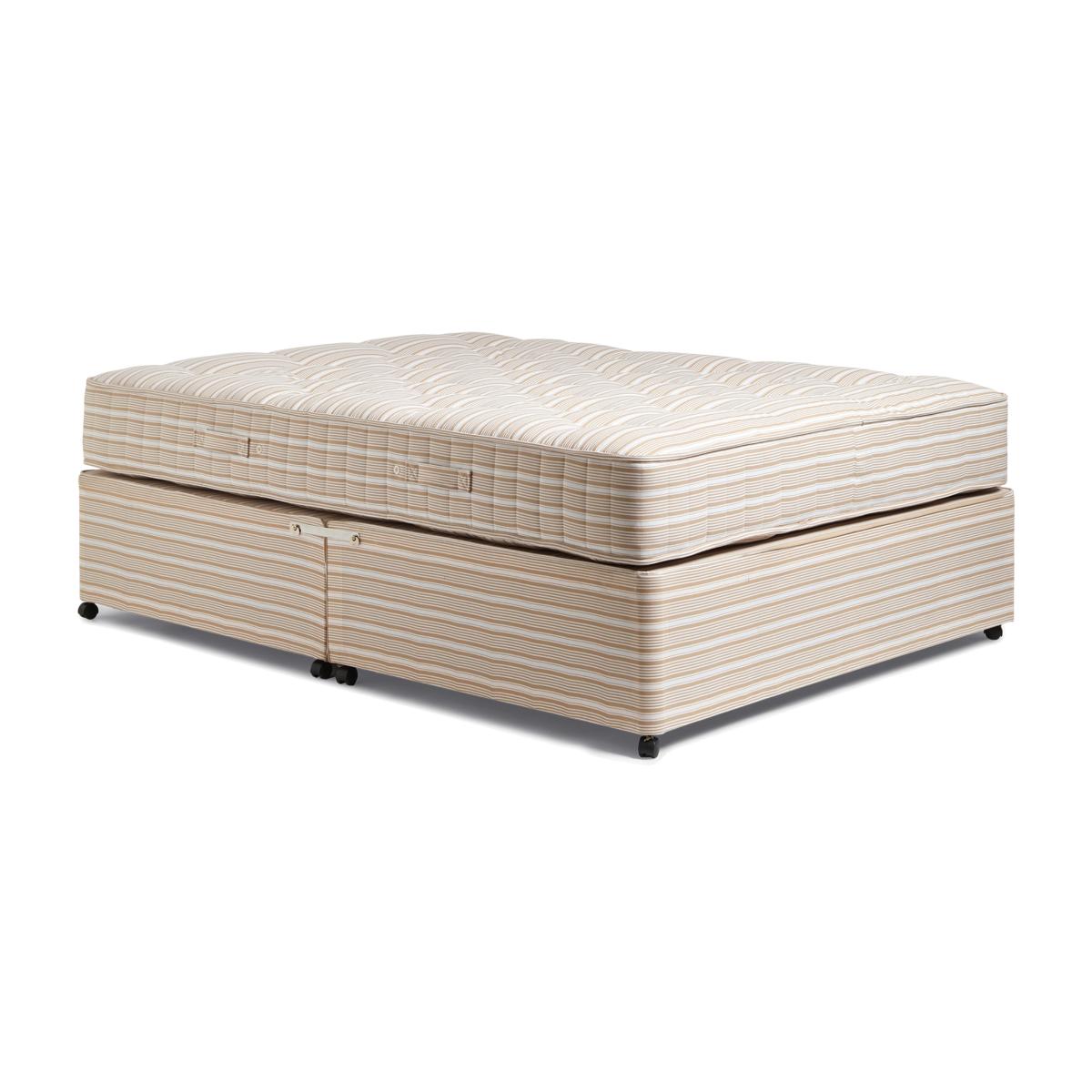 Our platform top standard divan base is ideal for those who like their bed to be a little bit firmer. Using time-honoured techniques, the wooden framed base is crafted from traceable timber, then padded and upholstered in 100% cotton ticking. The king size standard divan bed base comes on castors for effortless manoeuvring and is also available with drawers if you need extra storage. Mattress sold separately; pair with our standard mattress or upgrade to the deluxe king size mattress for ultimate comfort.