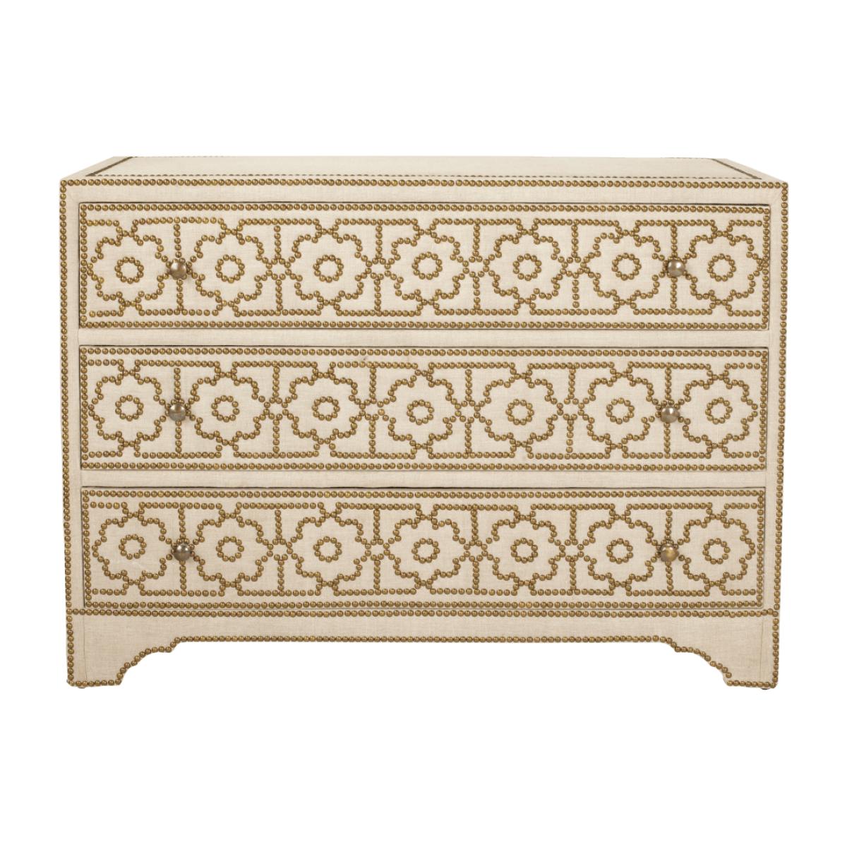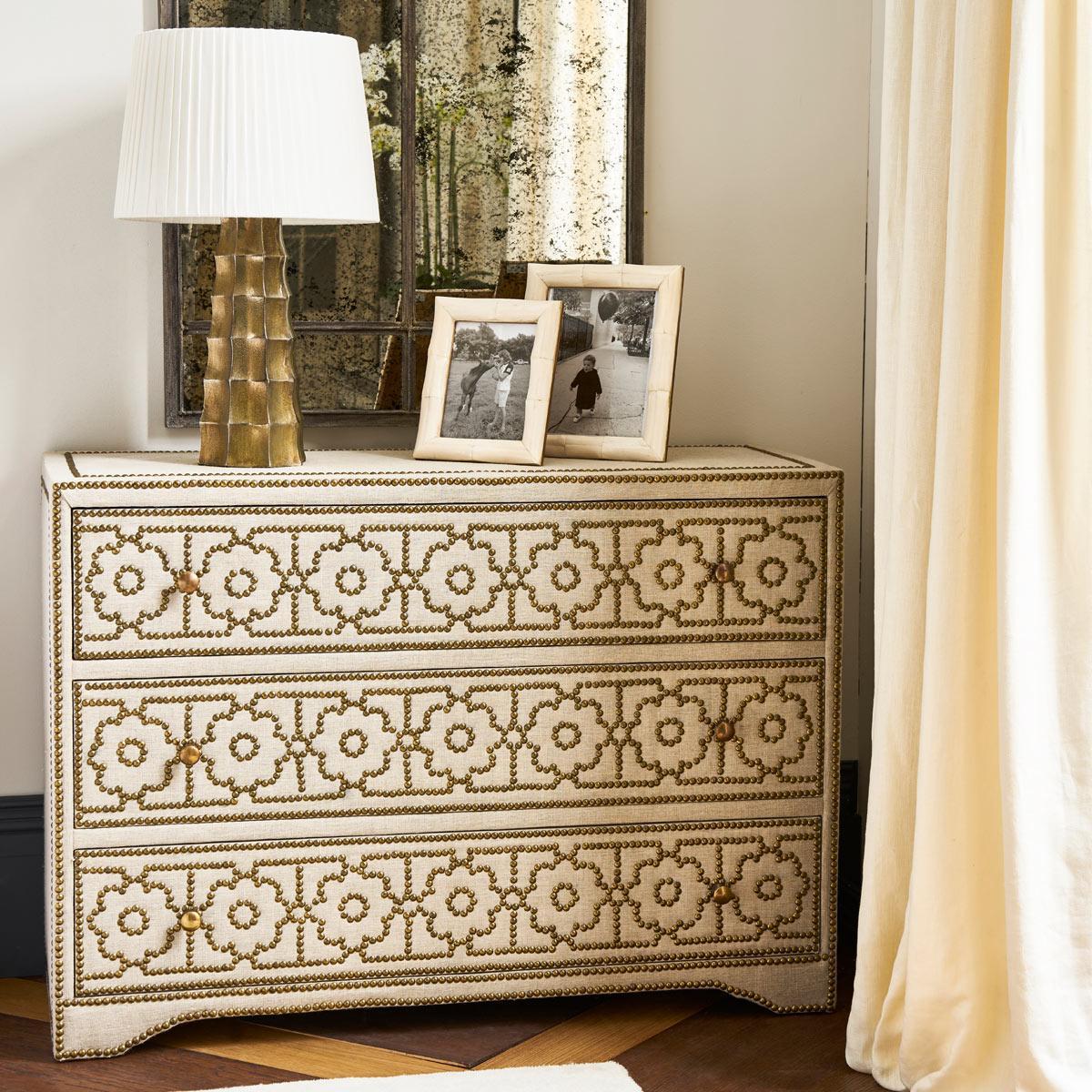 If a unique, showstopping chest of drawers is what you've been searching for, look no further than our Durbar design. A beautifully balanced piece, the natural material and studded floral design on the drawer fronts combine to make a real statement.