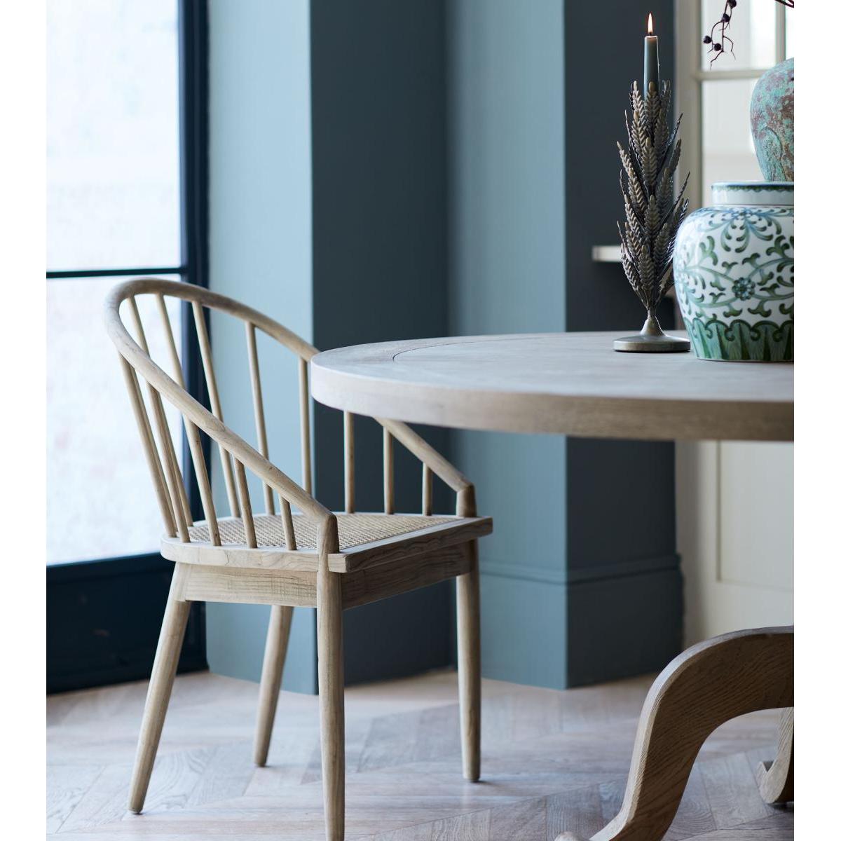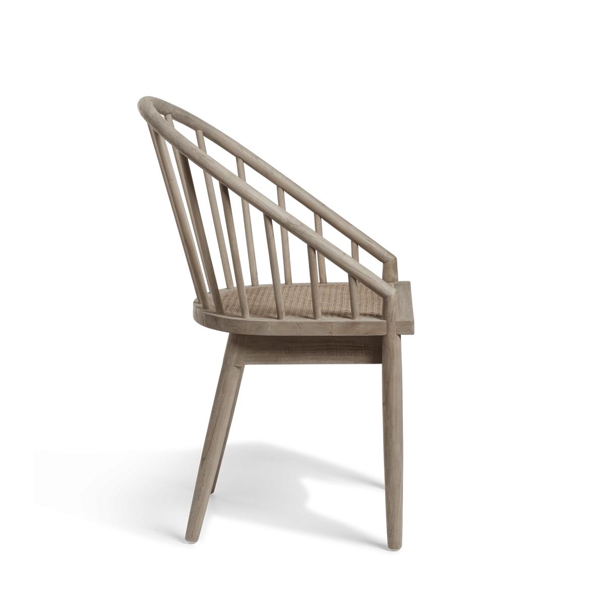 This handmade chair is a testament to the endurance of simple Shaker design. The Shakers valued honesty and utility in design, principles which influenced the 20th century minimalist movement. Their furniture was a balance between pieces that were sturdy enough to withstand daily use using limited amounts of locally sourced wood. Our Elder Dining Chair is crafted from solid elm wood – with a beautiful natural grain visible – it features a reinforced cane seat and an antique grey finish.