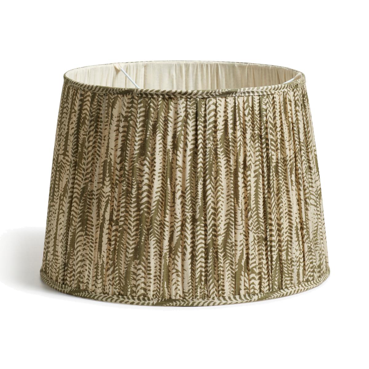 An ode to one of Britain's favourite house plants, this handwoven pleated silk lampshade is decorated with a hand-block printed fern design. We've launched matching cushions, so you can either coordinate your furnishings or, for an eclectic look, mix and match the shades with pieces in different styles. This larger grey green version works as a neutral among brighter and bolder colours.