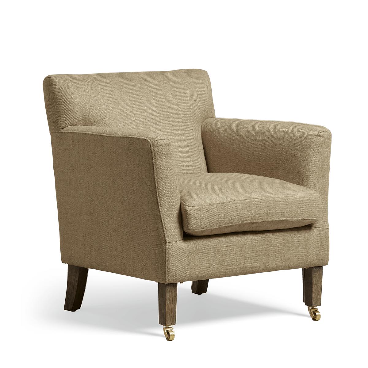OKA, Ellary Armchair - Wild Oats Wide Herringbone, Armchairs, Linen/Oak, Plain