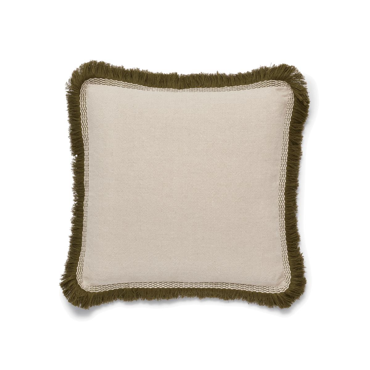 OKA, Elspeth Cushion Cover with Fringing - Natural/Green, Cushion Covers, Linen