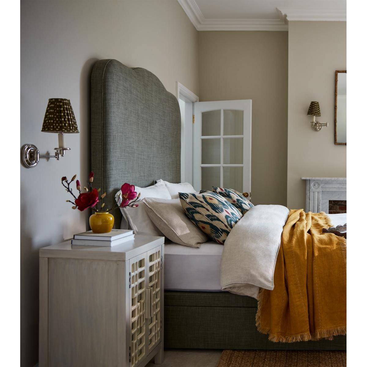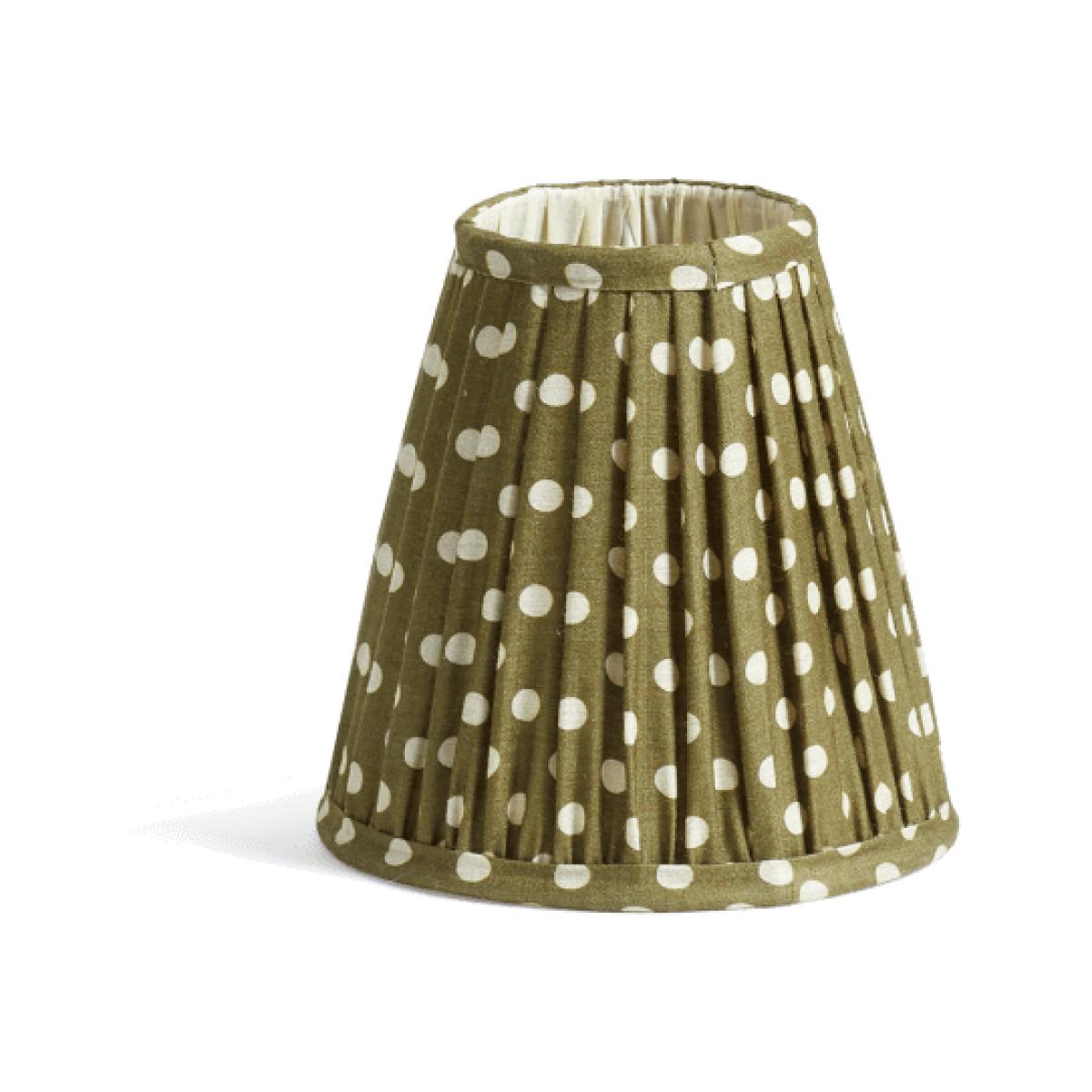 Our cone lampshades are pretty and petite, and this one is all the more so due to its charming spot pattern. Botanical-inspired green tones decorate the body of the lined, pleated silk shade, complete with matching piping. Originally designed to pair with our Ziara and Olira Wireless Table Lamps, this cone shade would work equally well sat atop other petite lamps in your collection and is especially well suited to wall lamps.