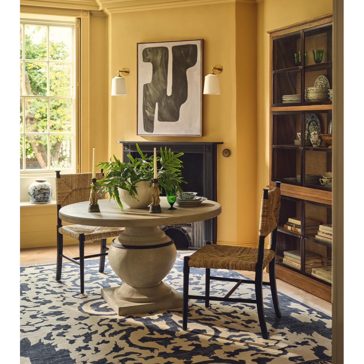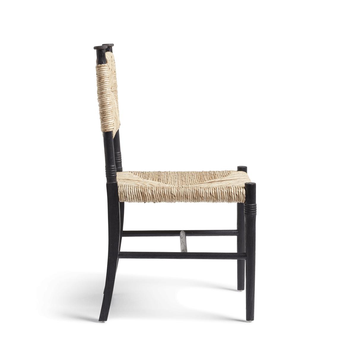 The Emund Dining Chair is named after an early Swedish king for its impressive, thronelike appearance and natural materials. The chair is constructed by hand from mindi wood painted black with a satin finish, its seat and backrest woven from seagrass. This rush weaving is a technique that dates back to Anglo-Saxon times and is believed to be East Anglia’s oldest recorded industry. Due to the artisanal techniques and natural materials used, each piece will have individual characteristics that add to their charm.