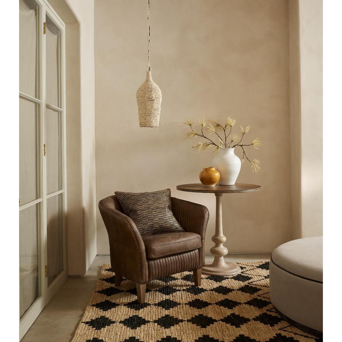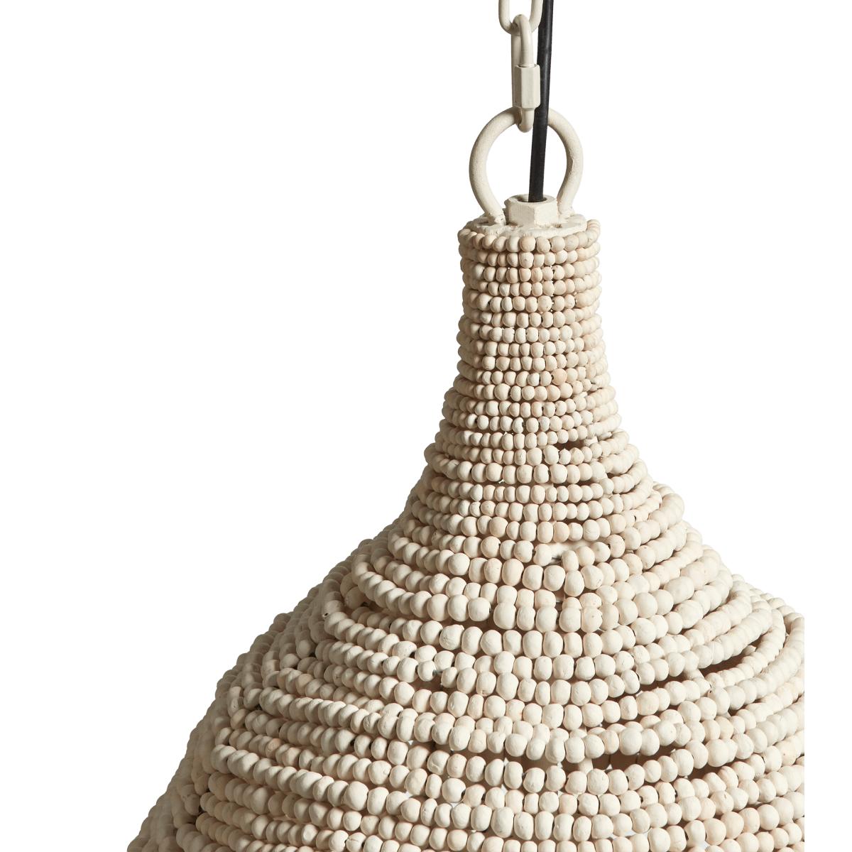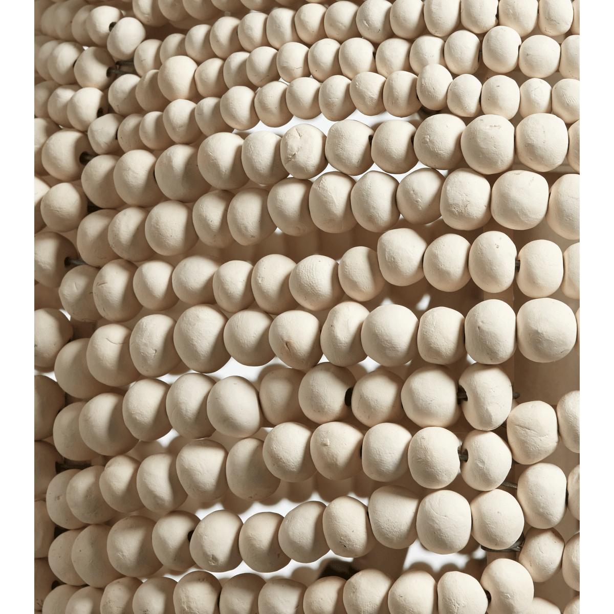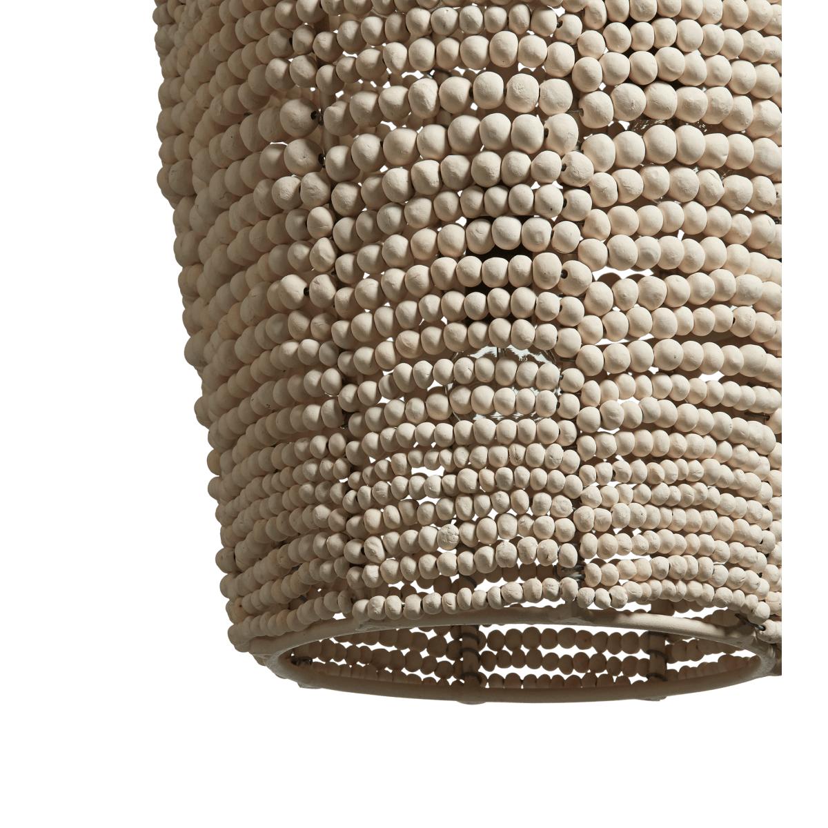 The Eris Bead Pendant Lamp has been designed exclusively for OKA and is handmade by a company committed to creating employment for local South African women in need; many of whom have been affected by poverty and HIV. The women learn to specialise in specific techniques, which they are able to execute from the comfort of their own homes. This was one of the reasons the founder decided to work with hand-rolled clay beads as the clay comes from local mines, requires skilled craftspeople and doesn’t harm the environment. The beads are dried in the sun, kiln fired and dyed for an attractive watercolour appearance with individual characteristics.