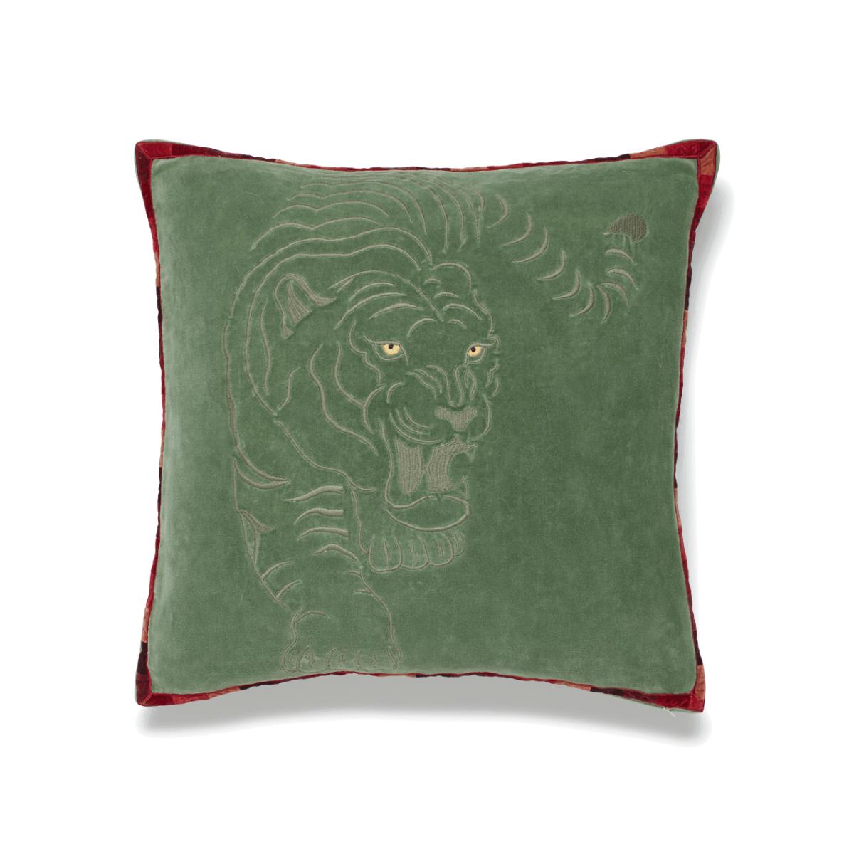 OKA, Famba Tiger Cushion Cover - Green, Cushion Covers, Cotton/Velvet, Animal