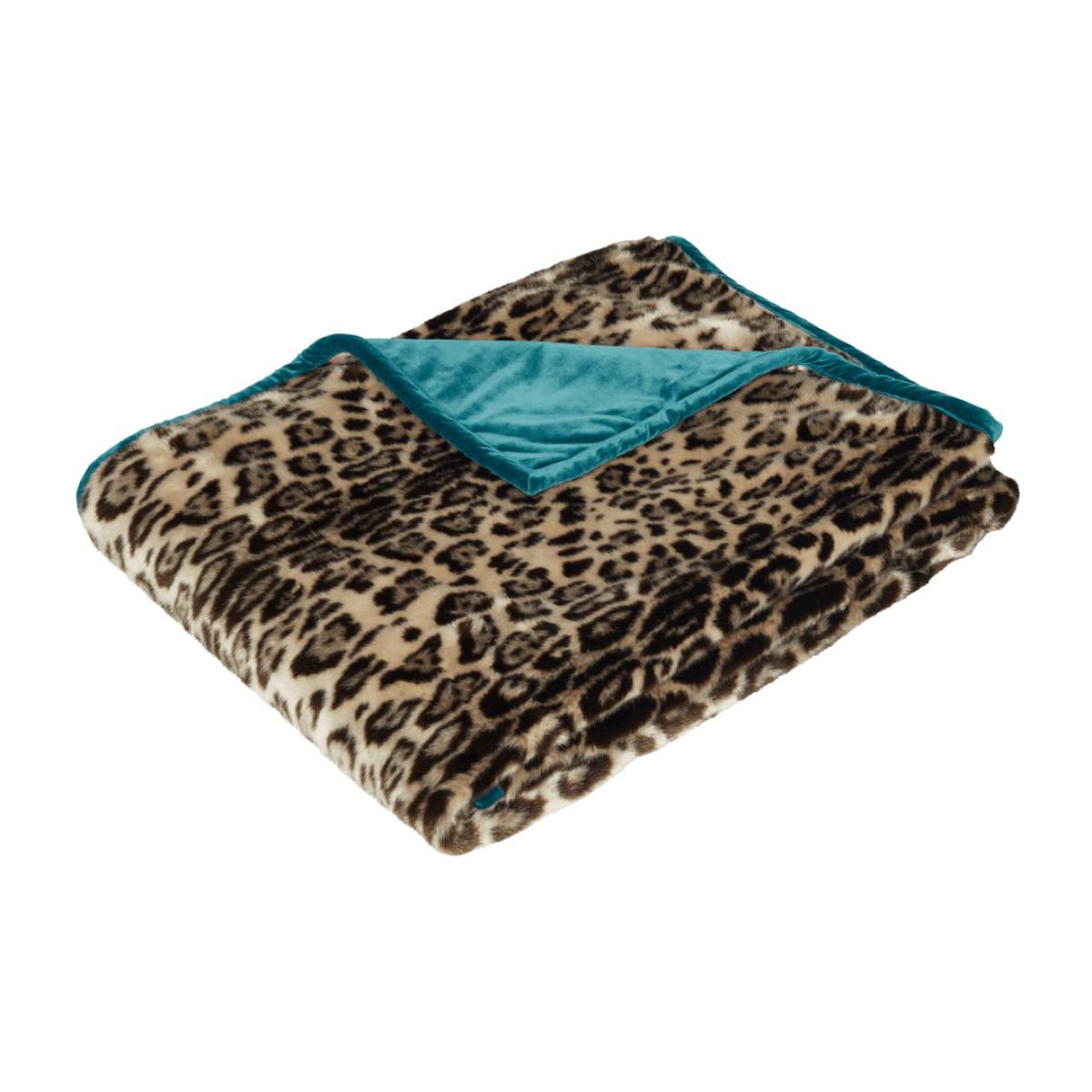 OKA, Faux Fur Throw - Leopard/Dark Teal, Throws, Faux Fur, Animal