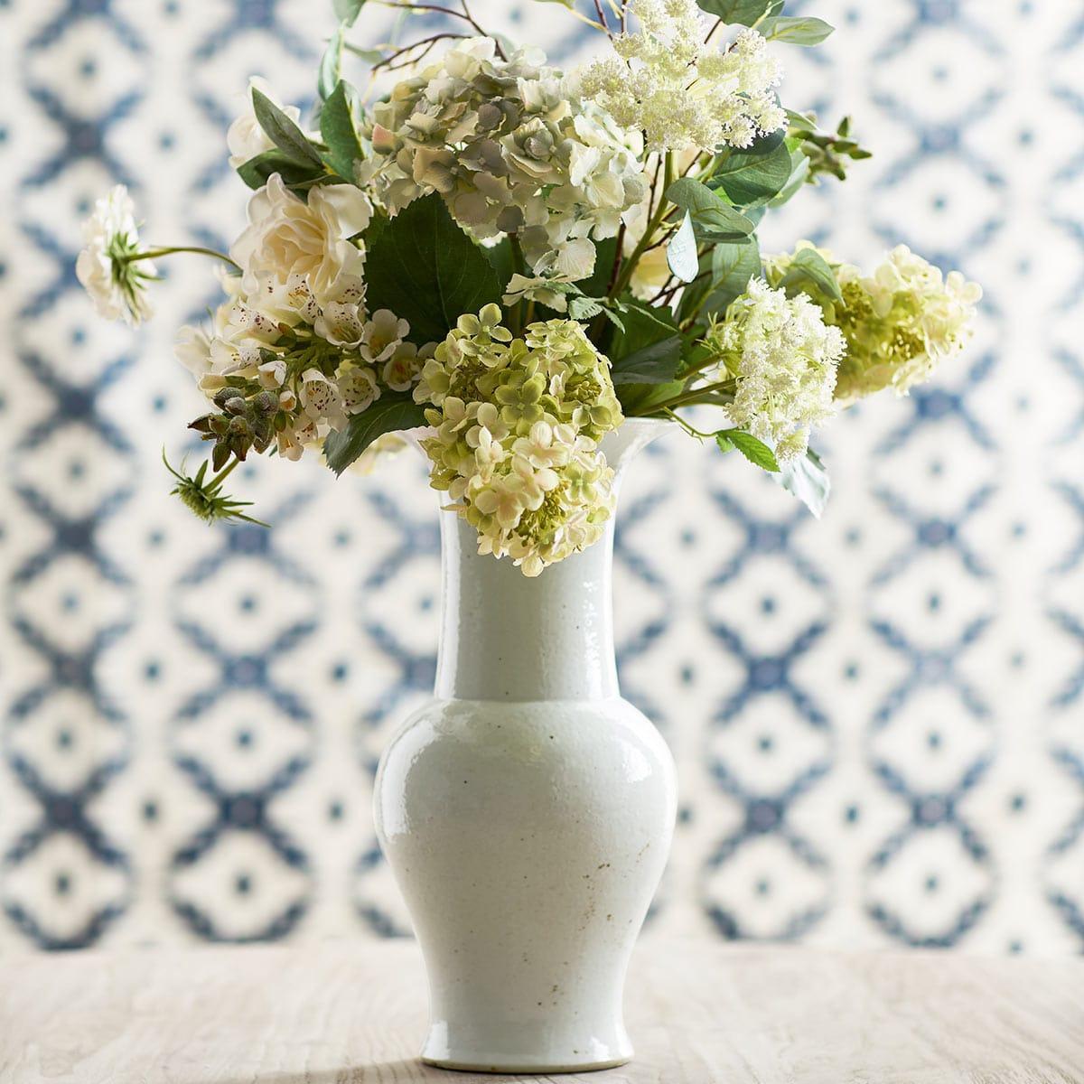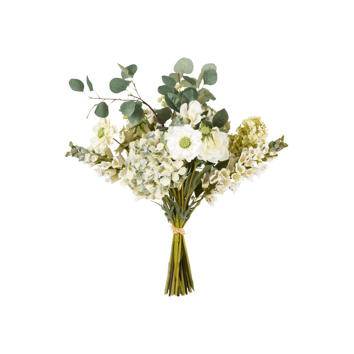 I love this faux hydrangea and scabiosa bunch for its versatility and realistic appeal. It works beautifully in both contemporary and traditional interiors, adding softness and a natural touch without any maintenance. This bunch is ideal for centrepieces, tabletop arrangements, or enhancing shelves and console tables. To maximise its visual impact, consider pairing it with minimalist vases or placing it in a stylish trough or basket for a more relaxed look. Since it's artificial, it’s a fantastic choice for low-light spaces or where fresh flowers wouldn't last, and it keeps its fresh look year-round. A practical styling tip is to cluster it with similar neutral-toned foliage to create a lush, natural arrangement that requires no watering or replacement.
