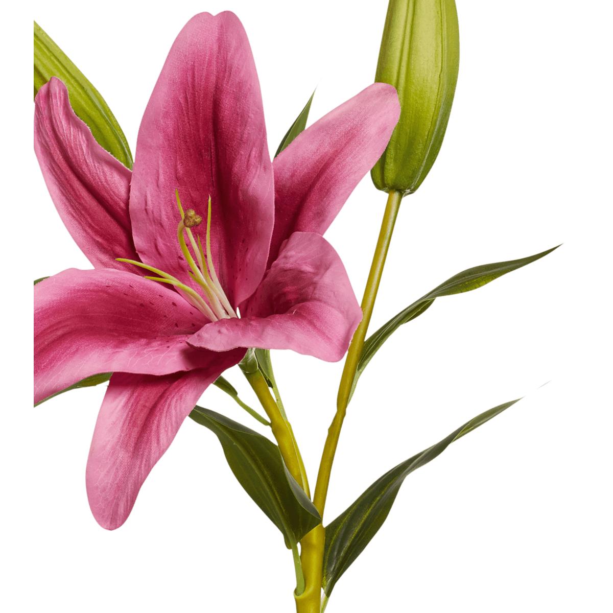Add a little blush to your blooms with this faux lily stem in a pretty pink hue. Associated with freshness, rebirth and purity, lilies make a striking focal point when added to a tabletop floral display. Better still, the eye-catching stamen on our realistic artificial flowers won't stain your soft furnishings.