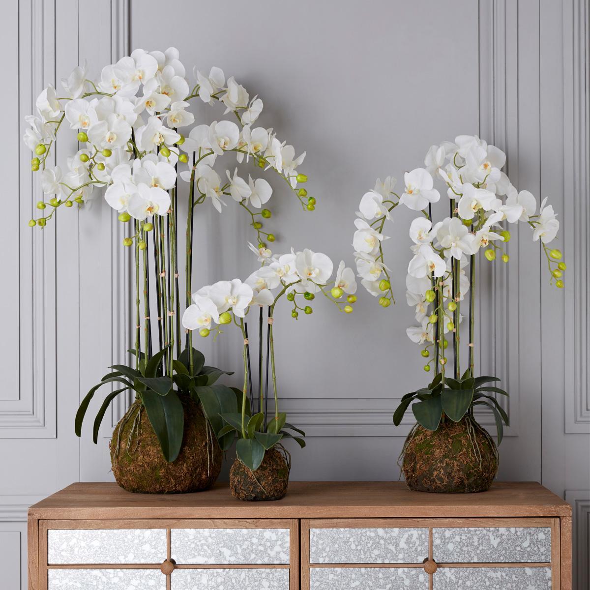 If you haven't investigated faux plants for a few years, you will be surprised at just how lifelike they have become. Available in three sizes, our Faux Phalaenopsis Orchid now comes with a planted bulb base covered in faux moss for a realistic finish. Add an extra hint of colour or texture to a space by displaying it in one of our range of decorative pots, urns and planters.