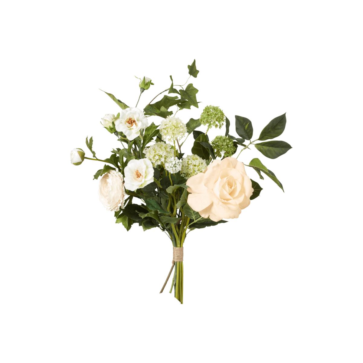 OKA, Faux Rose, Ivy & Allium Bunch - White, Floral Bunches, Fabric/Plastic