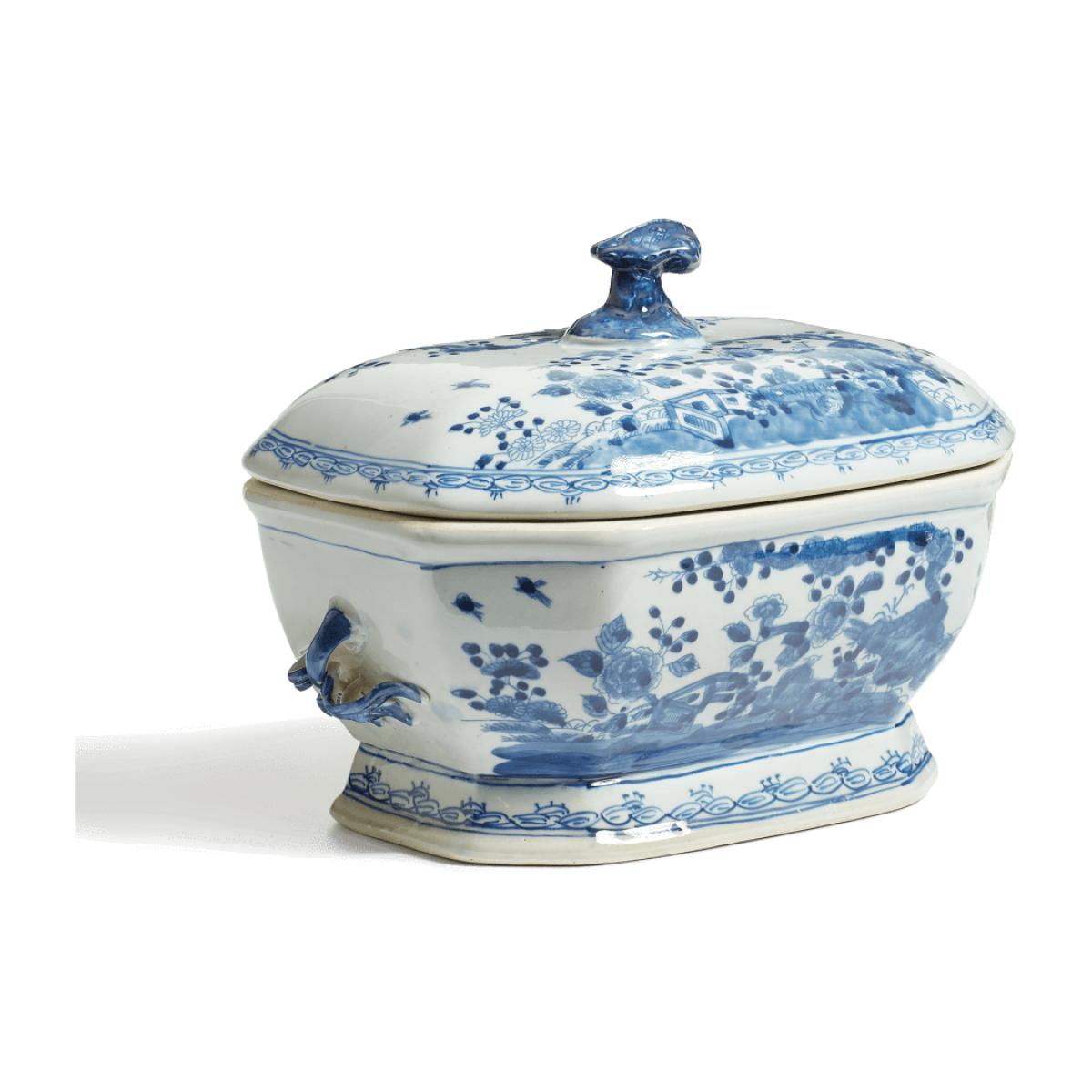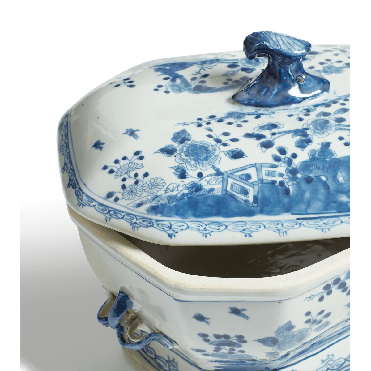 This beautiful ceramic pot is hand decorated with gargoyles and birds in a classic Chinese landscape scene. The hand-painted birds have a mythical quality about them, which is why we named it after the immortal birds in Chinese mythology that reigned over all others. Delicate, curling handles sit on the sides of the pot, highlighted in blue, and a purposefully distressed finish makes the Fenghuang look antique.