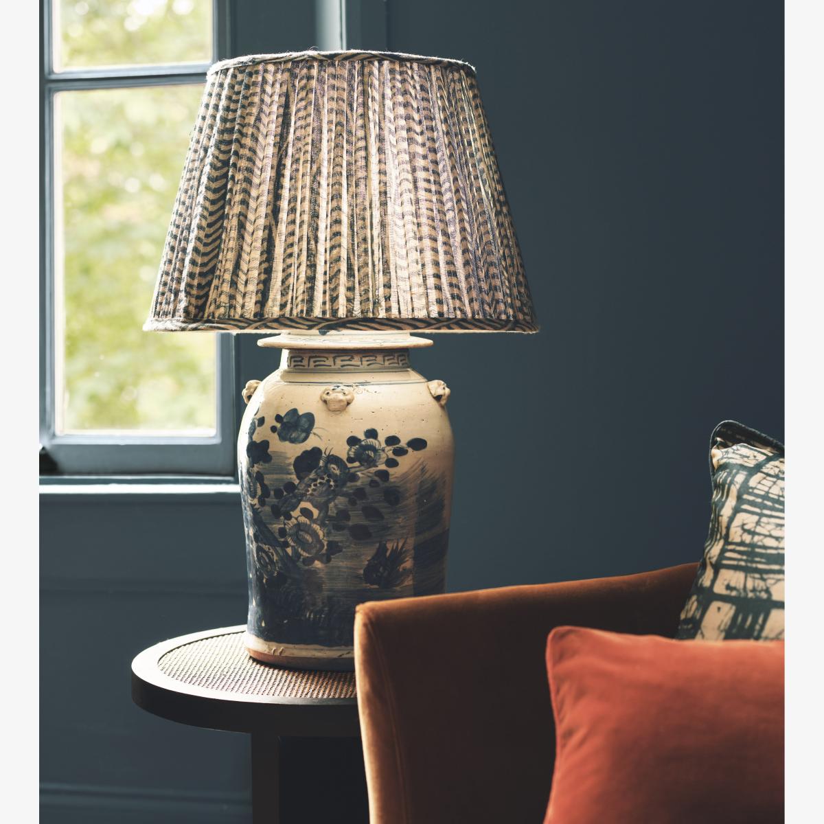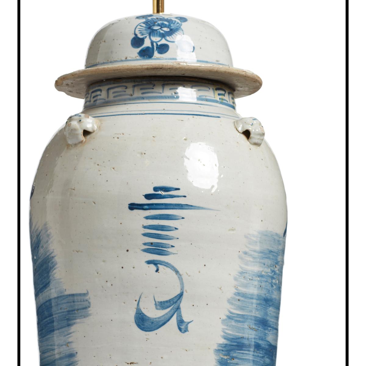 This beautiful ceramic lamp is inspired by the traditional ginger jar. It is hand decorated with gargoyles and birds in a classic Chinese landscape scene. The hand-painted birds have a mythical quality about them, which is why we named it after the immortal birds in Chinese mythology that reigned over all others. A purposefully distressed finish makes the Fenghuang look antique. Its artisanal craftsmanship and kiln firing process will result in individual characteristics from piece to piece that add to its charm.