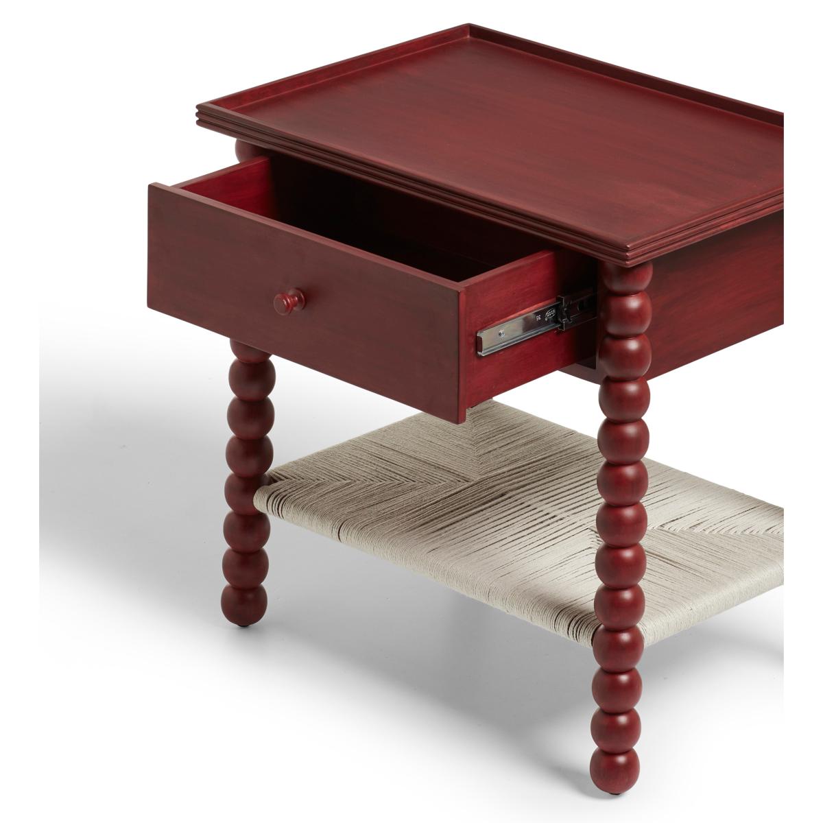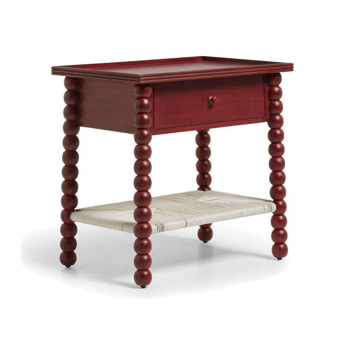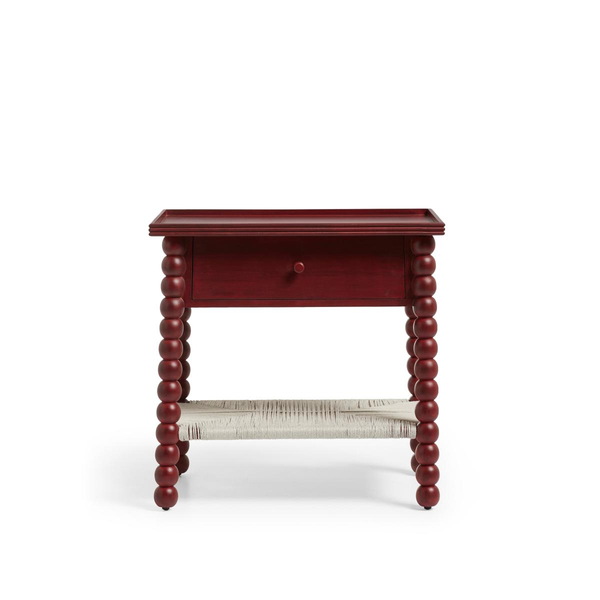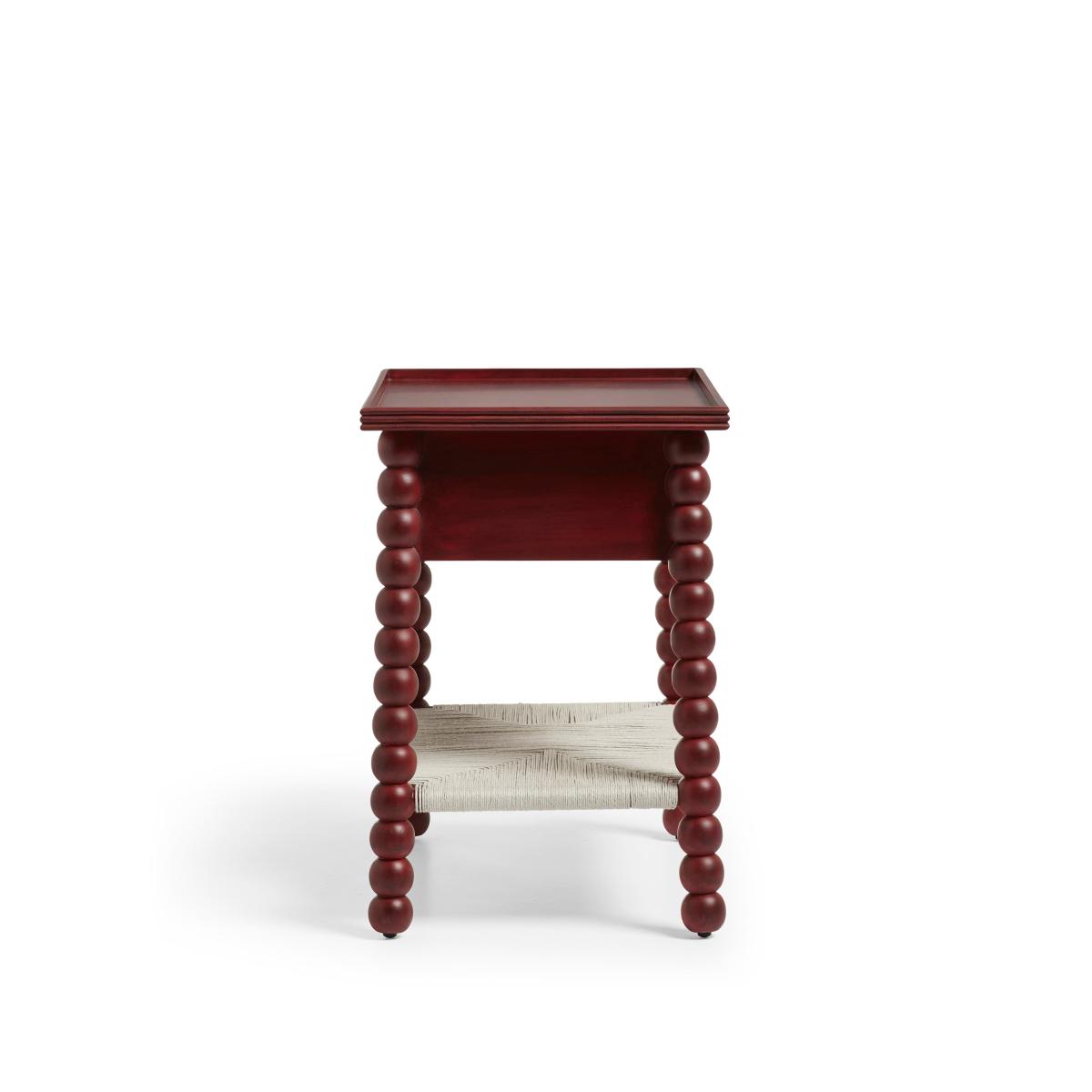 I love this side table for its bold, statement-making colour and playful design. The brushed red finish lends a modern edge to various interiors, from eclectic and boho schemes to more contemporary spaces. Its chunky, beaded legs add texture and visual interest, making it ideal as an accent piece or bedside table. Practical styling tips include pairing it with neutral-toned furnishings to highlight its colour, or layering with textured textiles and metallic accents for a curated look. It works well in living rooms, bedrooms, or even as a standalone statement piece in entryways, bringing personality and colour into any space.