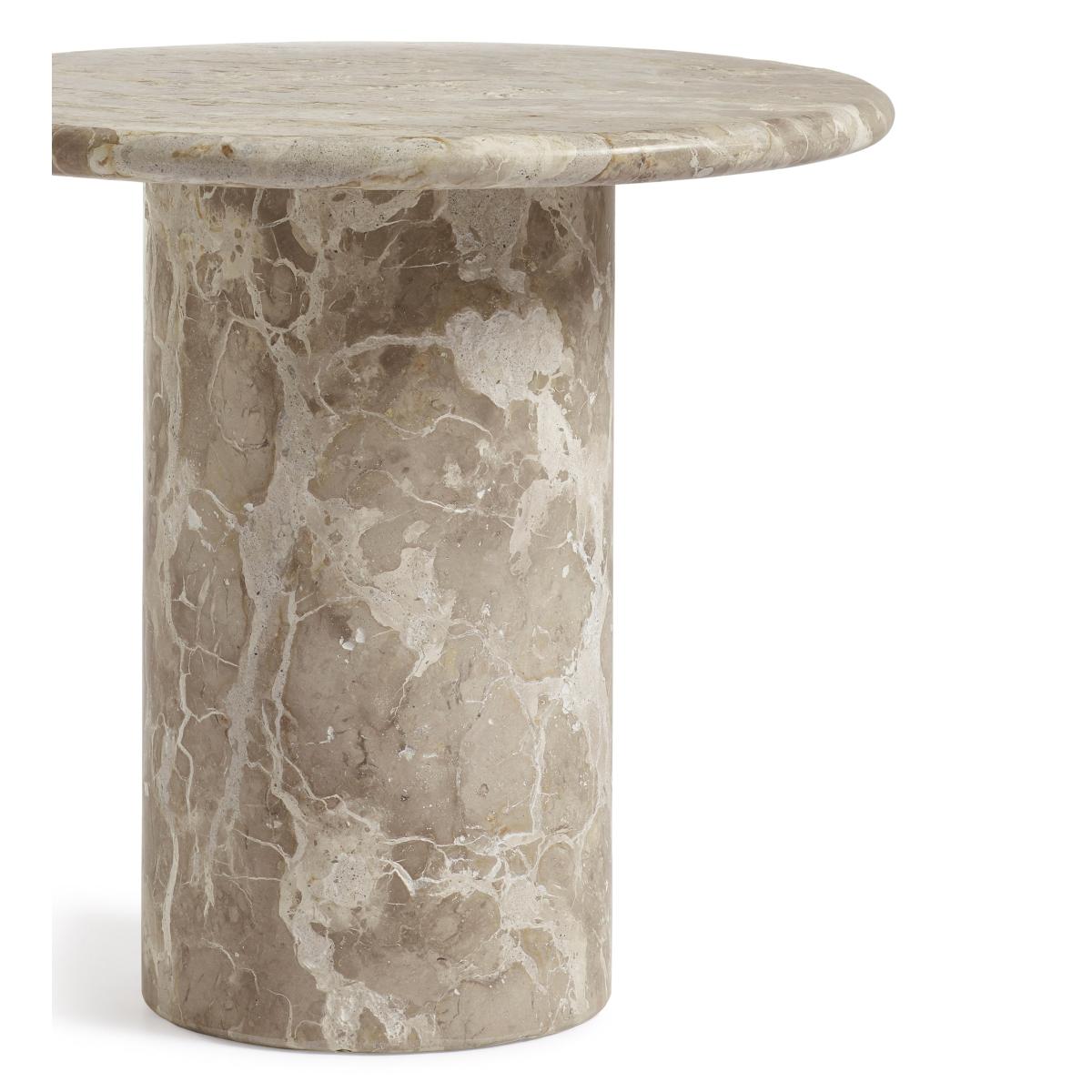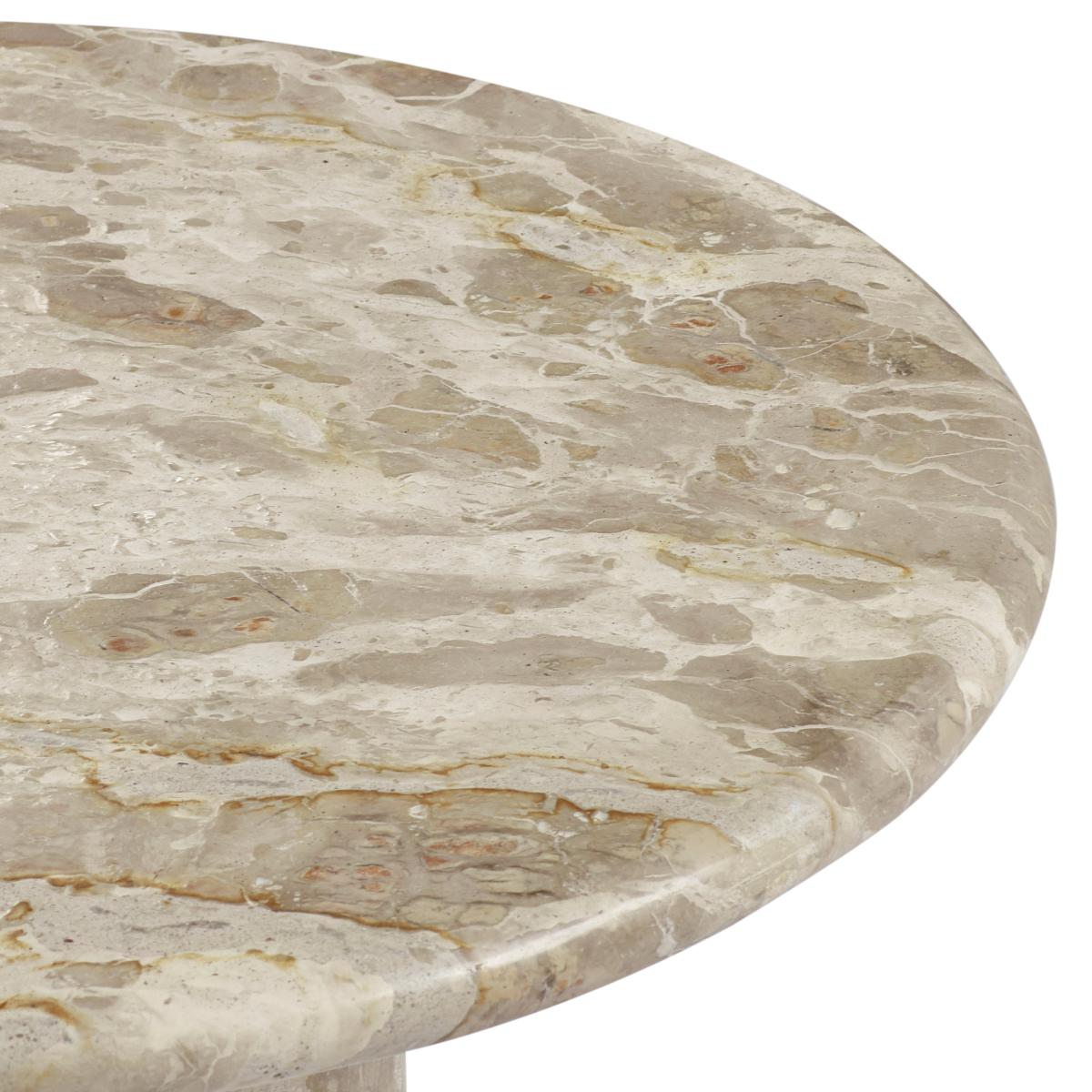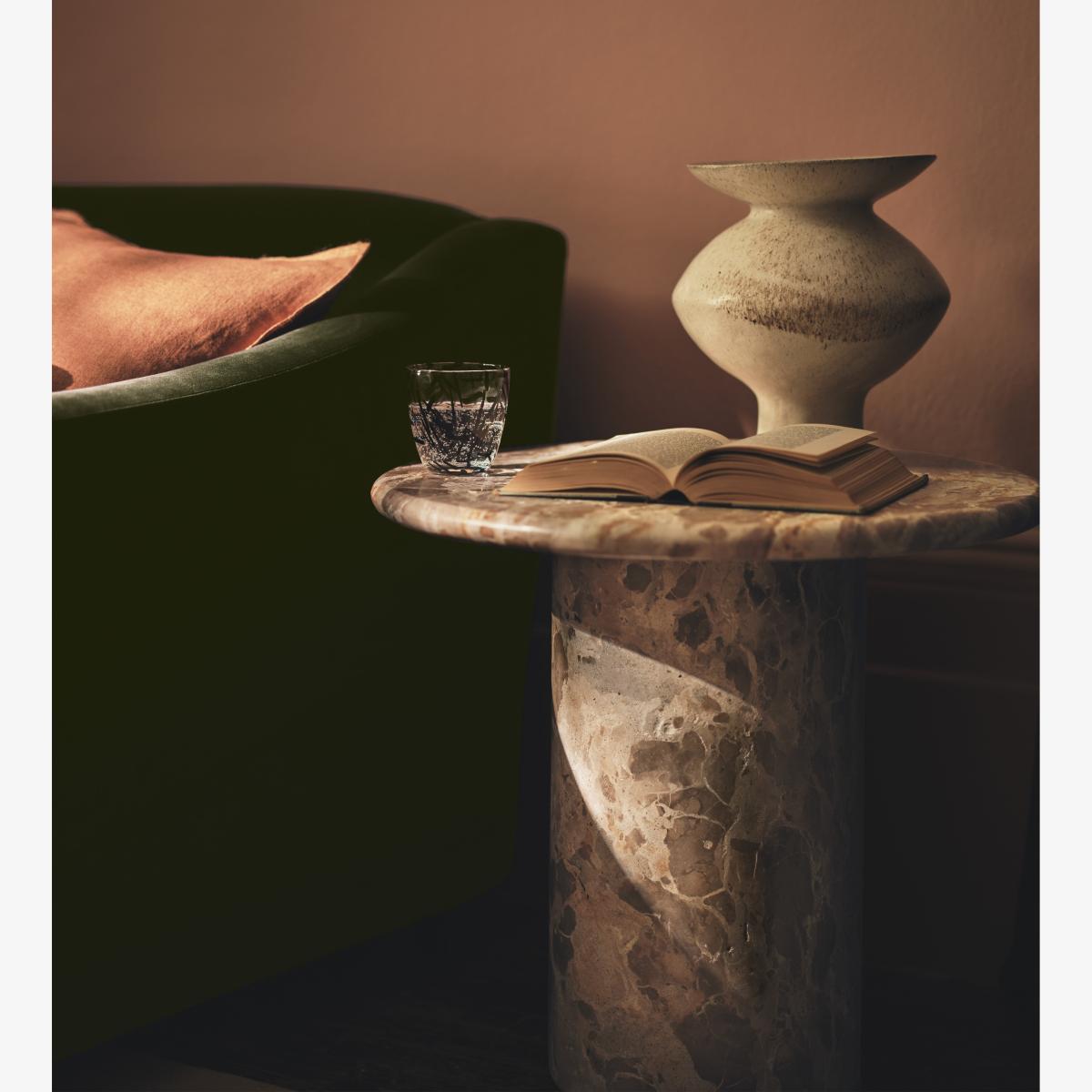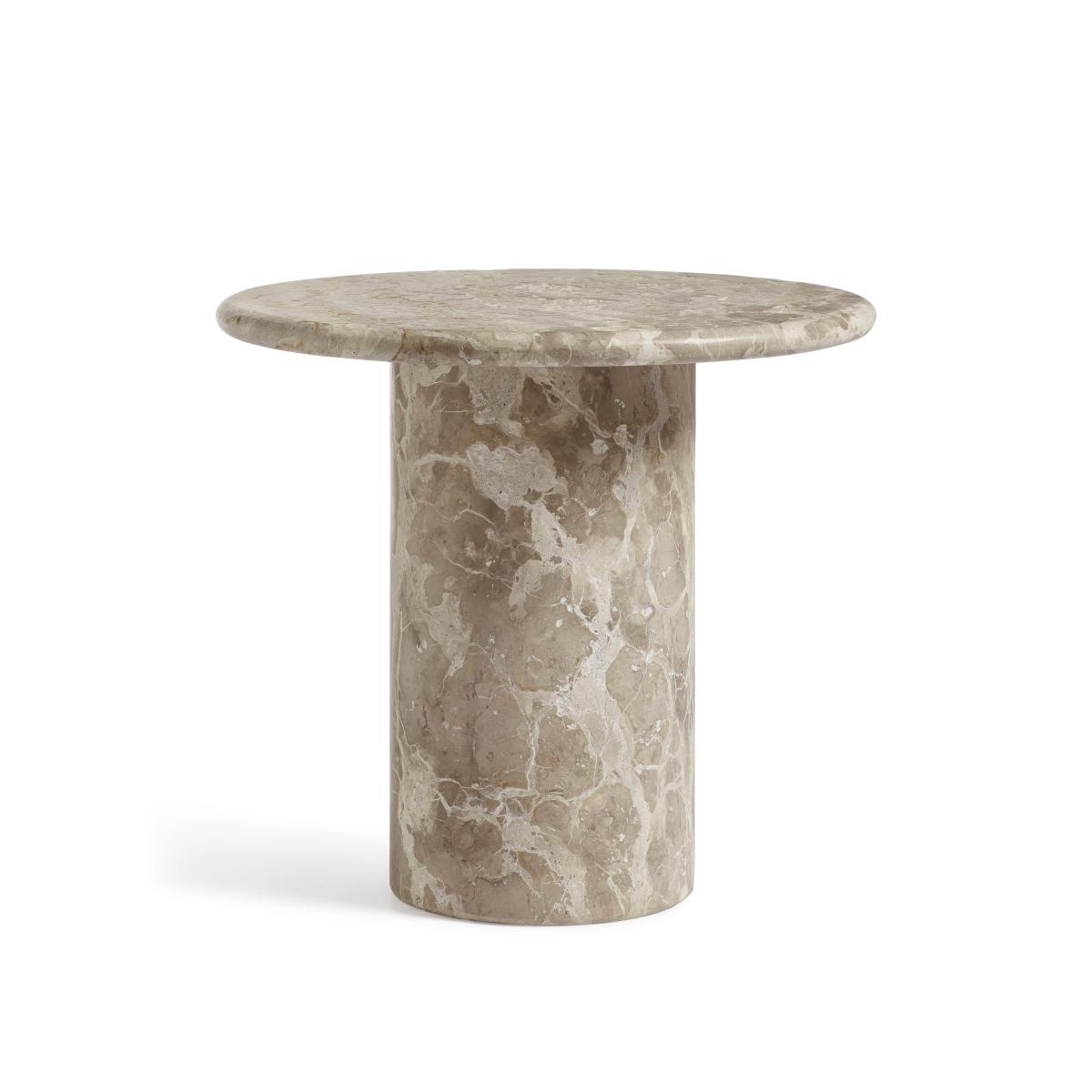Our Floren Side Table is made entirely from mottled beige-coloured limestone. The finish holds a lot of texture that really adds to its charm, as well as being sandblasted for a subtle sheen. Due to the natural materials used, each piece will have individual characteristics.