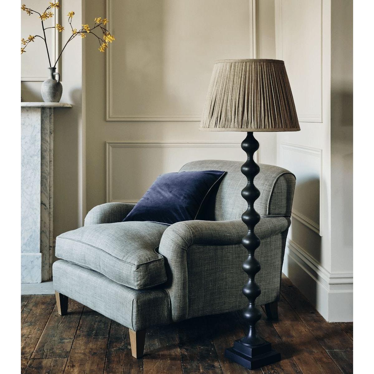 Flowing and curvaceous, the Fortuna Lamp has been sized especially to sit beside a chair and give the perfect light for reading by. We recommend a 40-46cm diameter shade for use with this lamp. Made from aluminium finished to a matt Gunmetal Grey.