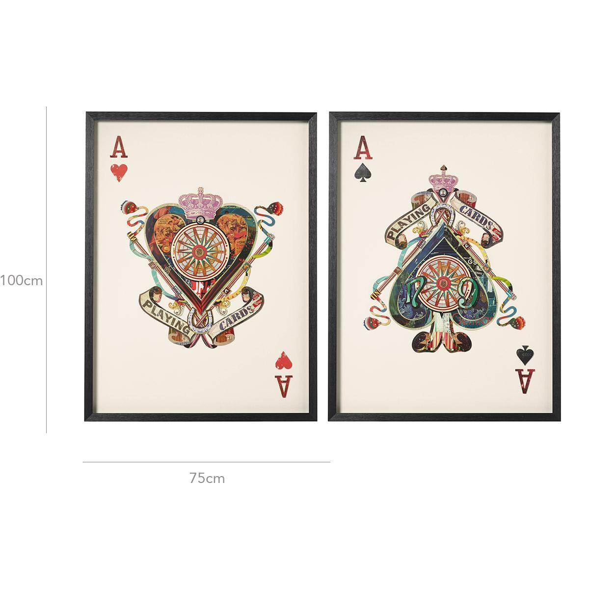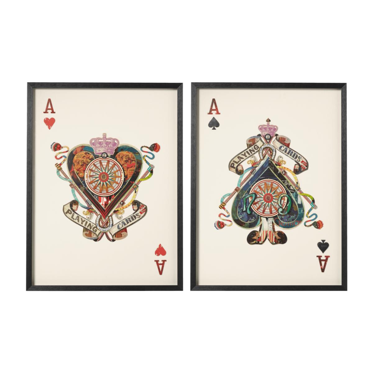 OKA, Framed Pair of Ace of Spades & Hearts Collages - Multi, Collages, Glass/Wood