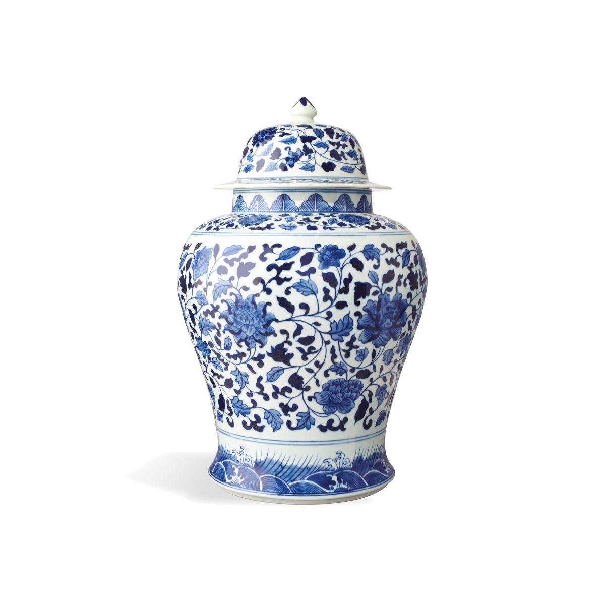 OKA, Giant Mandarin Hand-Painted Lidded Jar - Blue/White, Decorative Pot