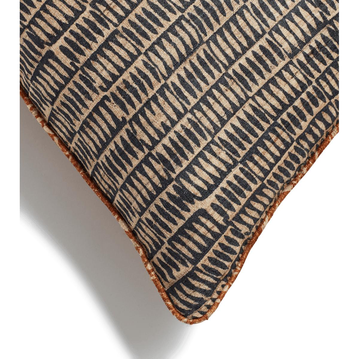 Focusing on craftsmanship and pattern, the Grassetto range’s handwoven fabric is made from natural tussar silk, cultivated in the Indian states that have been producing the yarn for centuries. The yarn is spun, dyed and block-printed entirely by hand before being crafted into cushion covers with a structured leaf pattern on one side and a more free-flowing design on the reverse – one dark charcoal, the other a warm ochre colour. Due to the nature of the fabric and the artisanal processes that shape these cushion covers, there may be some colour and pattern variation between each piece – it’s all part of their charm.