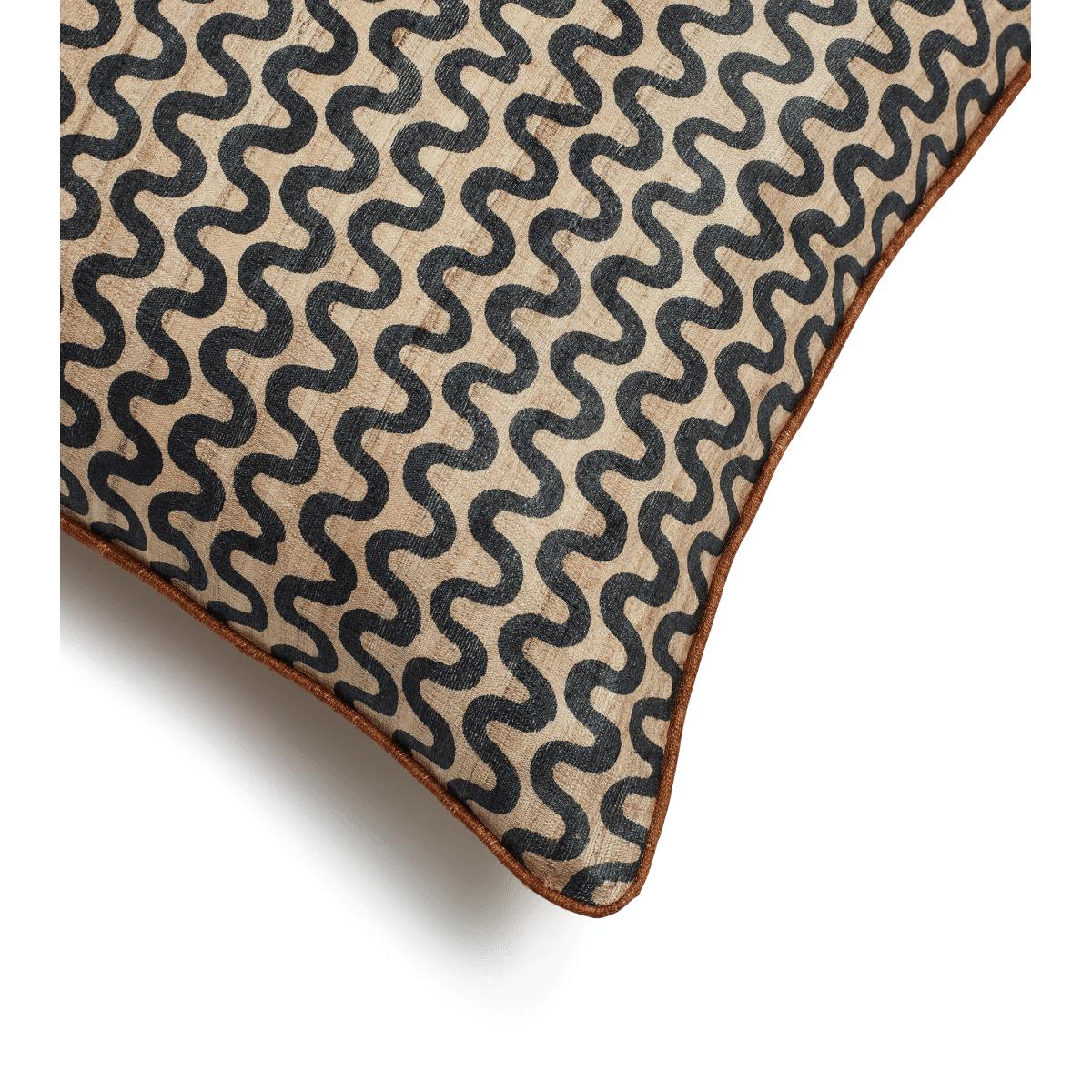 OKA, Grassetto Waves Cushion Cover - Indigo/Ochre, Cushion Covers, Cotton/Silk, Abstract