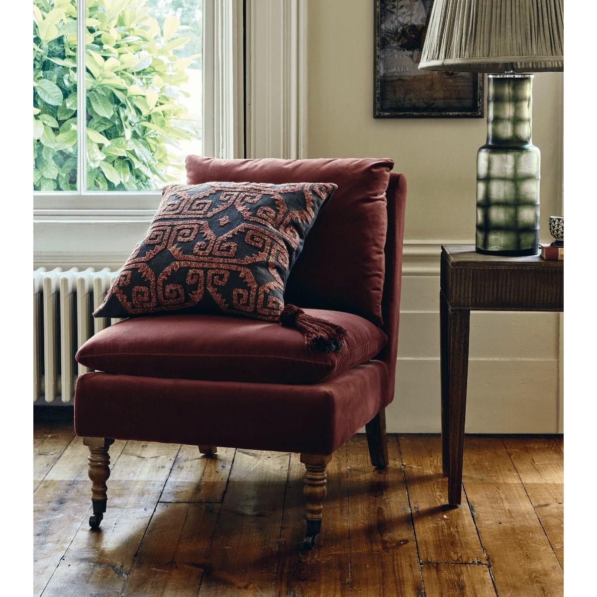 This cushion cover is a stylish yet versatile choice, combining a rich, earthy tone with a striking geometric pattern that effortlessly adds visual interest to both traditional and contemporary interiors. I love its linen fabric - it offers a tactile, natural feel that pairs well with relaxed, casual schemes or layered with other textures for a more crafted look. The terracotta shades work especially well in warm-toned schemes, but it can also serve as a standout accent in cooler palettes. A handy styling tip is to pair it with complementary textured cushions or use it on a neutral sofa for an instant focal point. The tassel detail adds a touch of playful sophistication, making it a perfect piece to elevate a sofa or armchair for an inviting, stylish space.