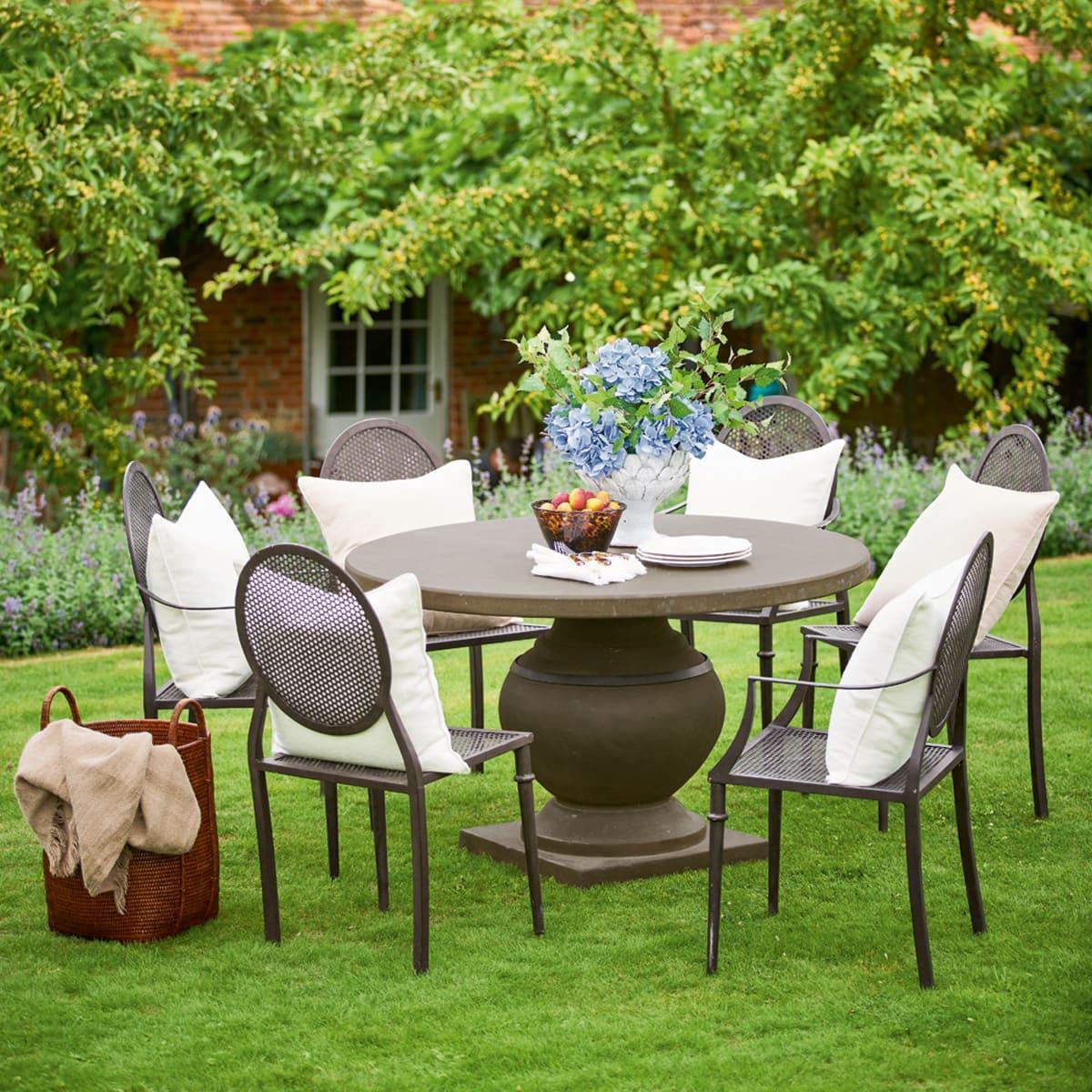 The OKA Greenwich Garden Chair is a versatile piece that combines classic wrought iron craftsmanship with a timeless Fossil finish, making it suitable for both traditional and contemporary garden settings. I love how its open cane back adds visual interest while remaining lightweight and practical. It works well in outdoor dining areas or as a statement piece on a patio, and can easily be paired with cushions for added comfort and colour. For styling, consider mixing it with lush greenery and textured textiles for an inviting al fresco look, or set it against sleek, modern planters for a more minimalist aesthetic. Practical tips include using it as a standalone accent or creating a coordinated set with other wrought iron pieces to establish a cohesive outdoor space.