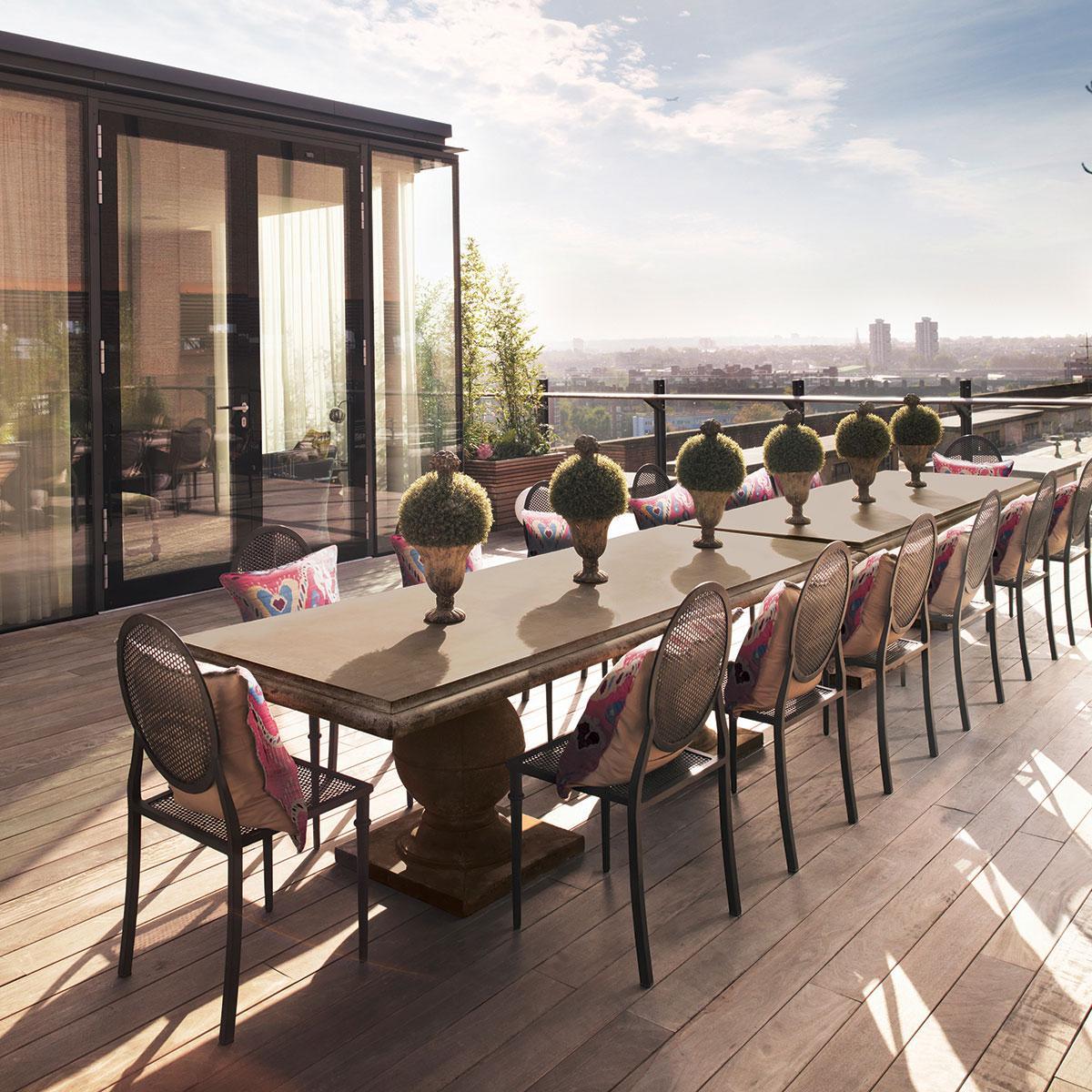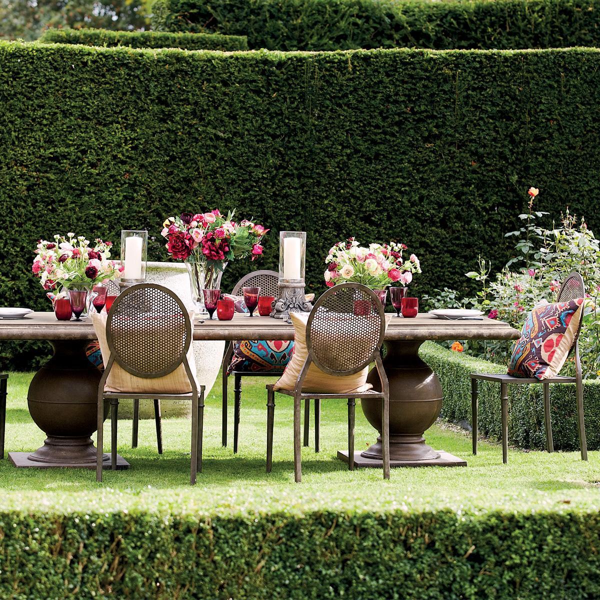 A stylish, weighty and elegant garden chair made from galvanised wrought iron with an aged, patinated finish and a filigree back and seat, the Greenwich Chair makes a perfect partner for our Callanish Dining Table. These outdoor metal chairs can be stacked for neat storage (although we would advise stacking no more than four-high for safety). For extra comfort, add one of our large square cushions – remember to bring these inside when it rains though!.